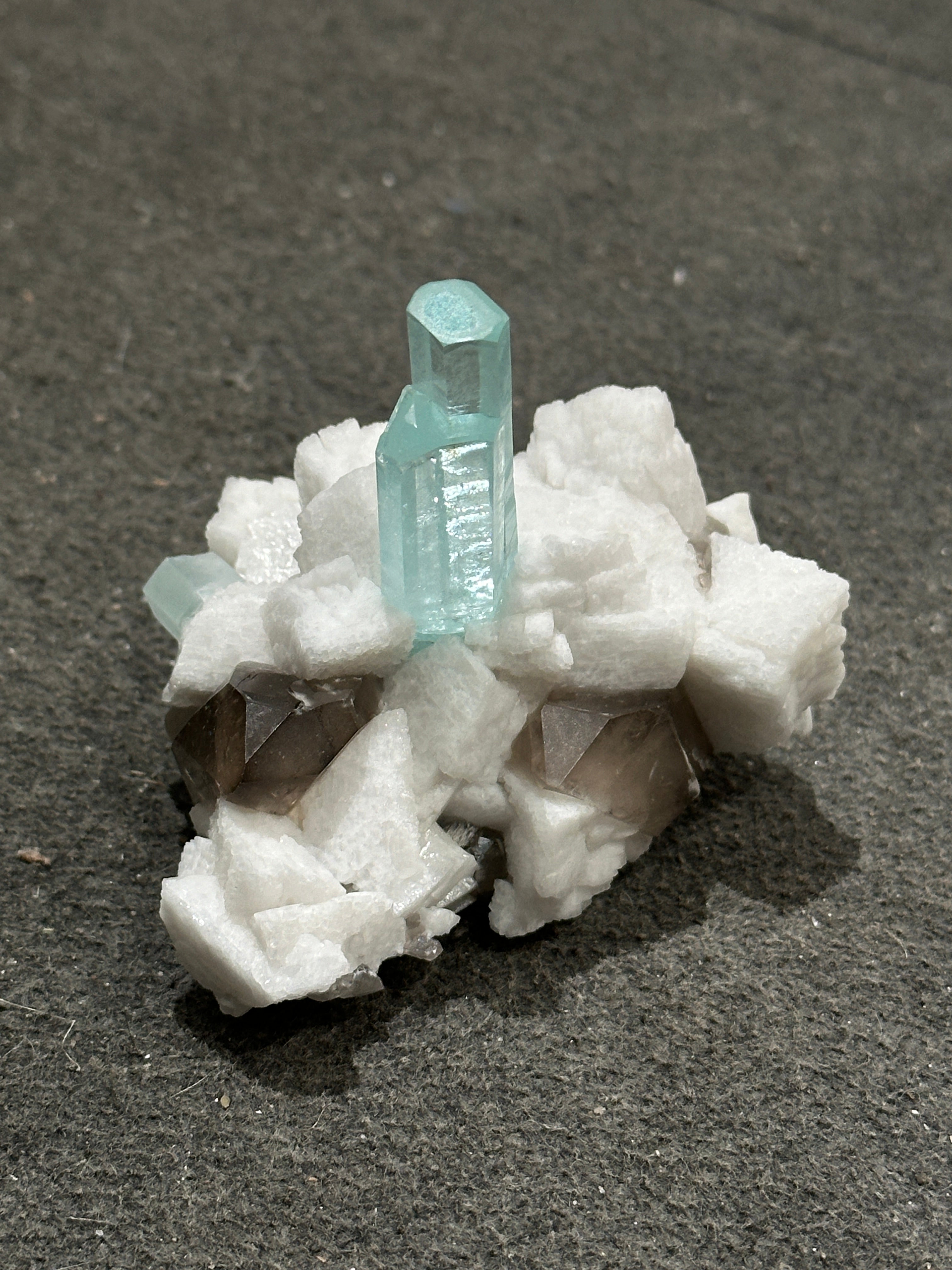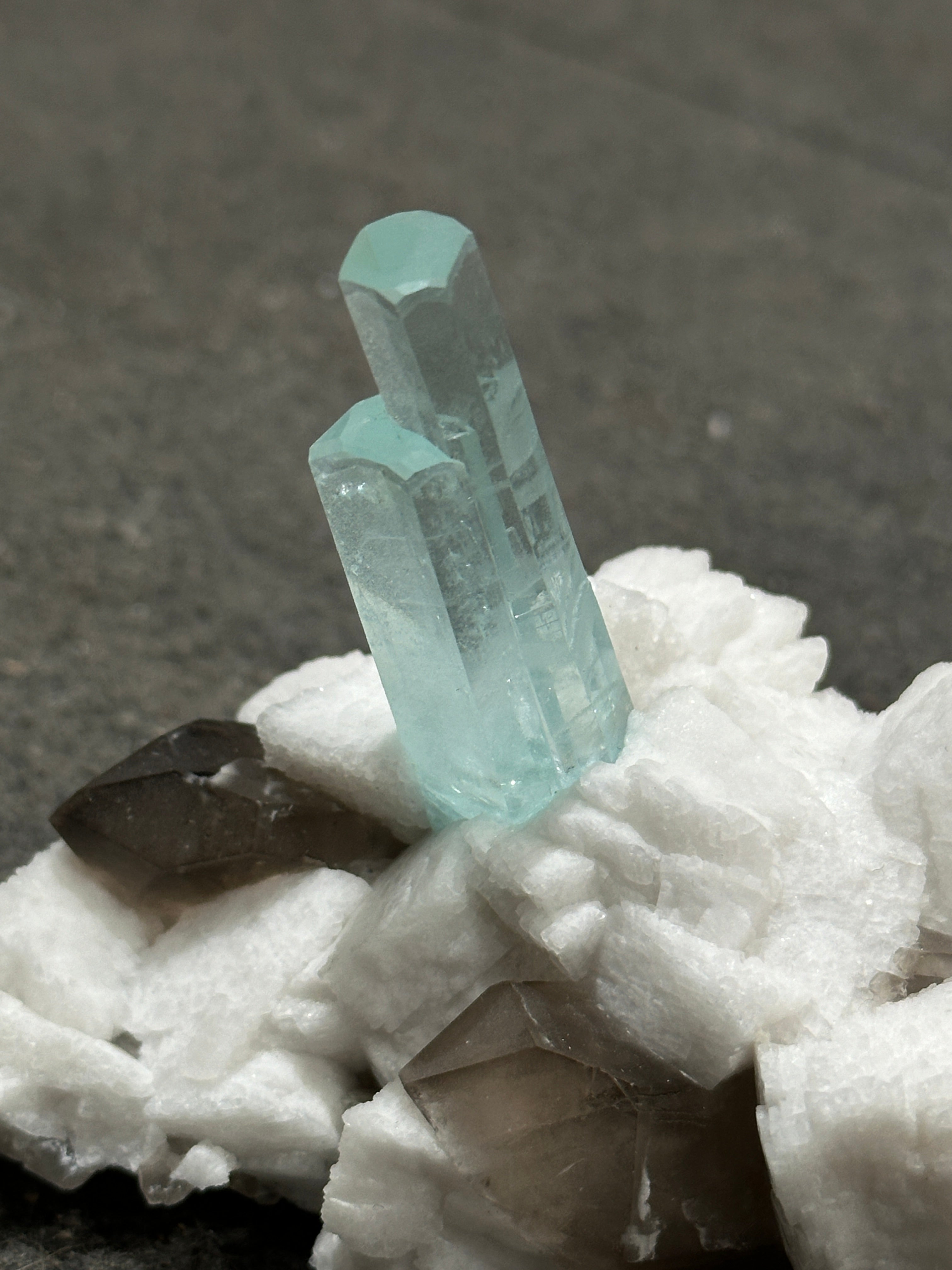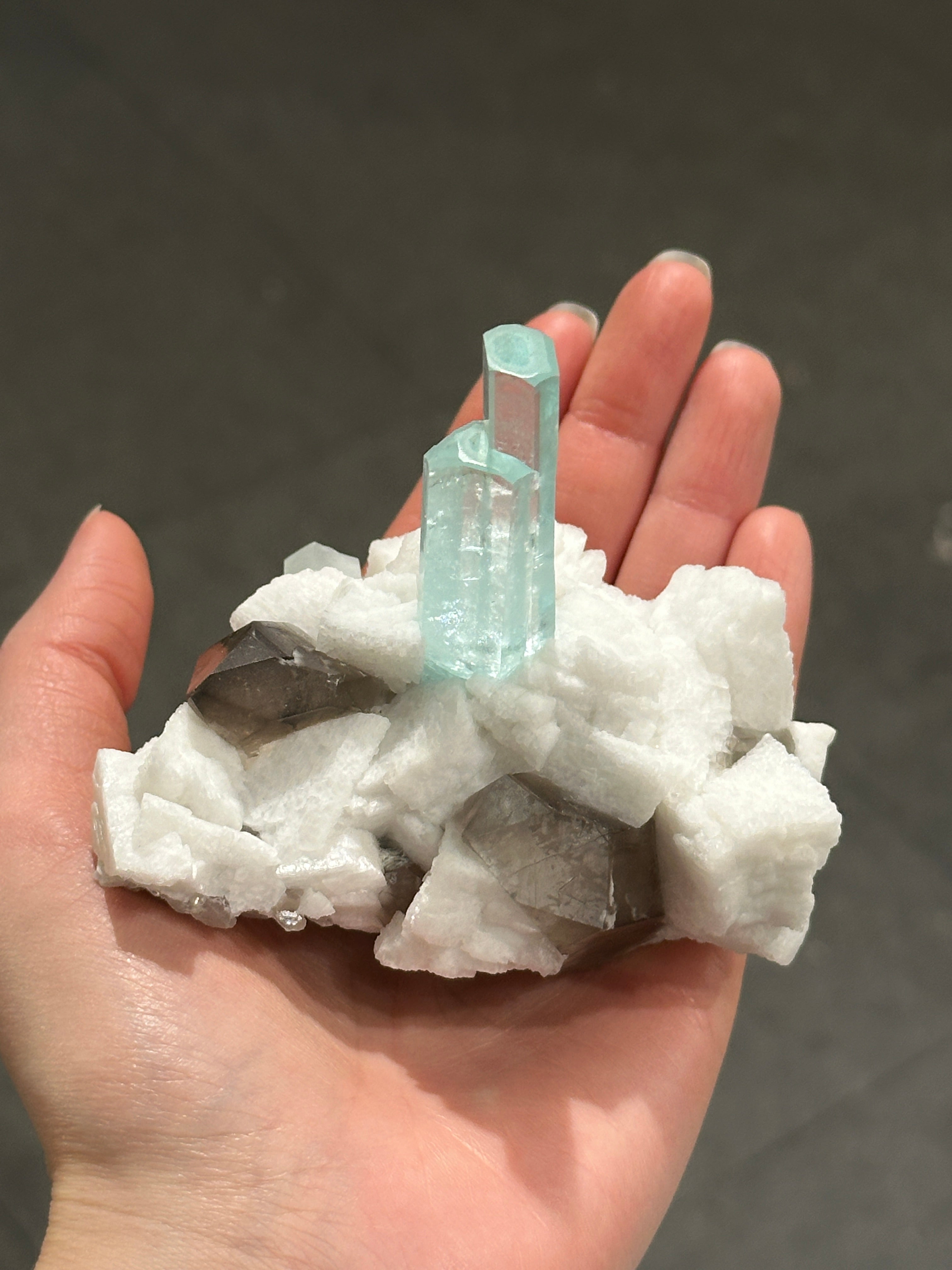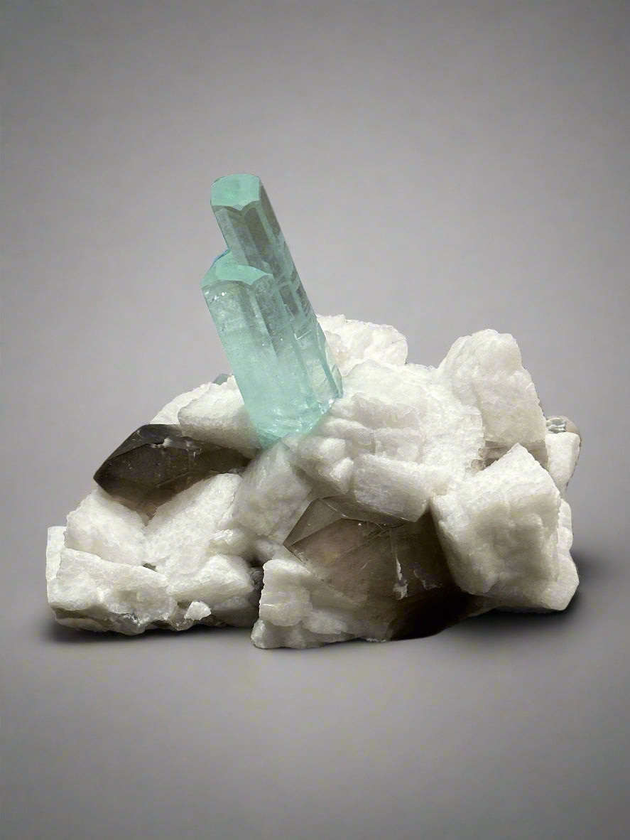 Discover the natural beauty of Aquamarine with Albite and Smoky Quartz from Pakistan. This stunning combination offers a unique blend of translucent blue hues and smoky undertones, creating a mesmerizing visual appeal. This gemstone trio is perfect for collectors and enthusiasts alike.