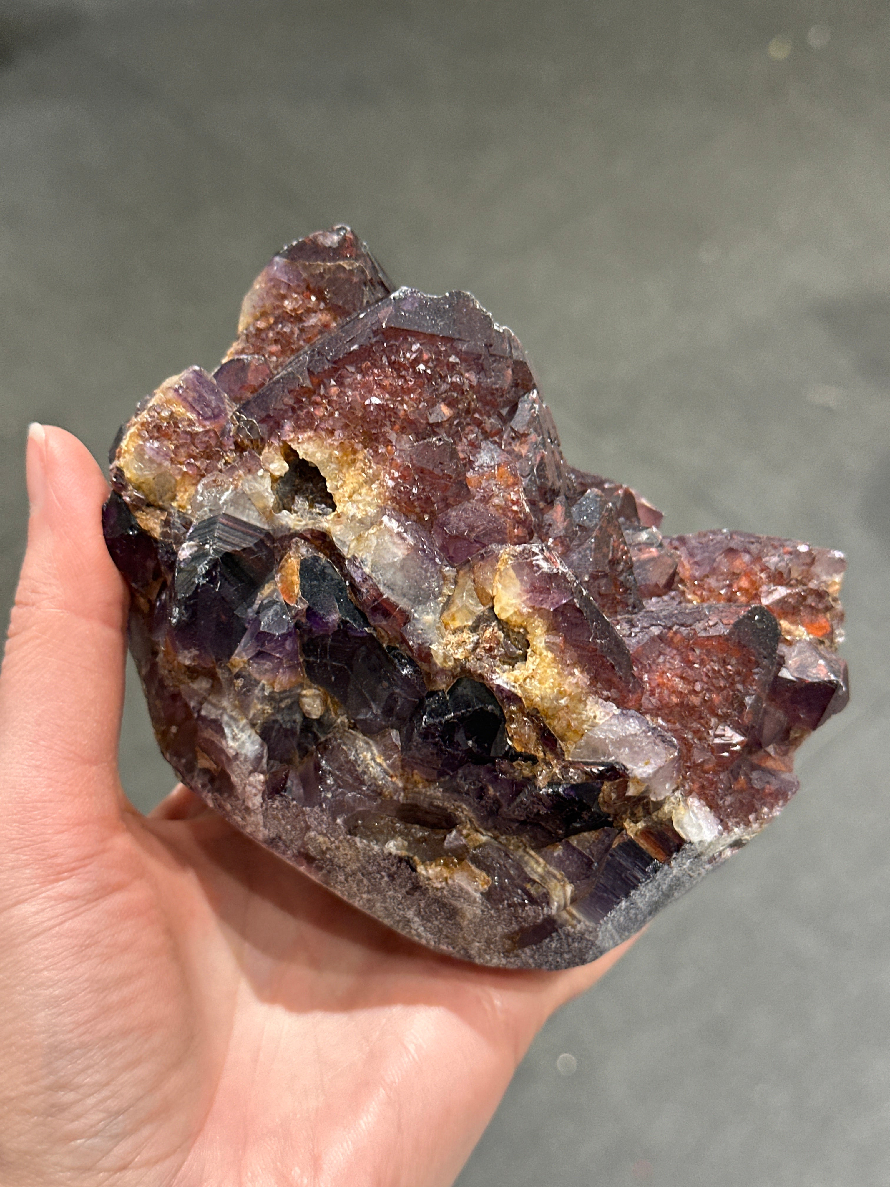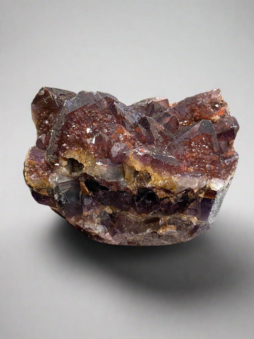 Discover a natural work of art with our Chevron Amethyst with Hematite crystal from India. This unique combination of minerals creates a beautiful and powerful presence, making it a captivating addition to any collection.