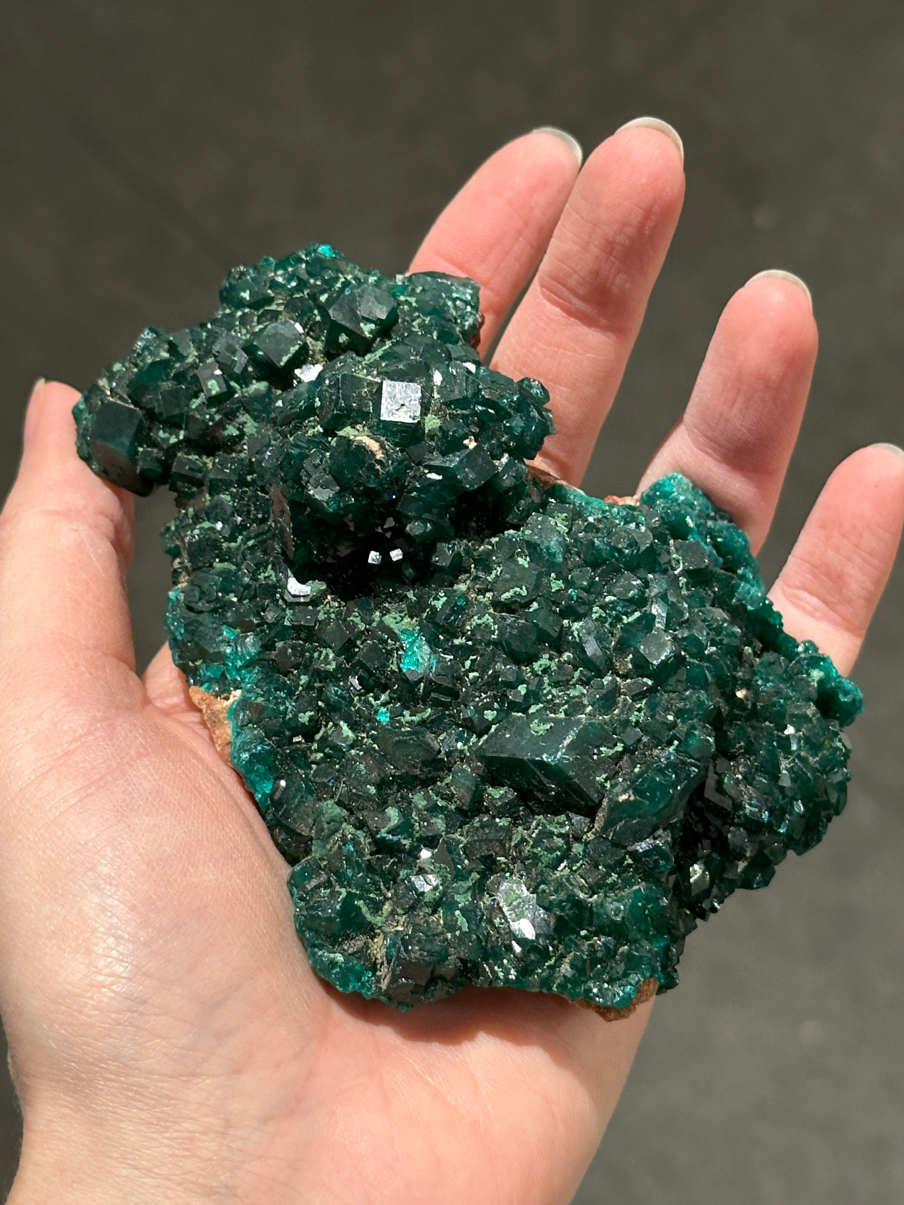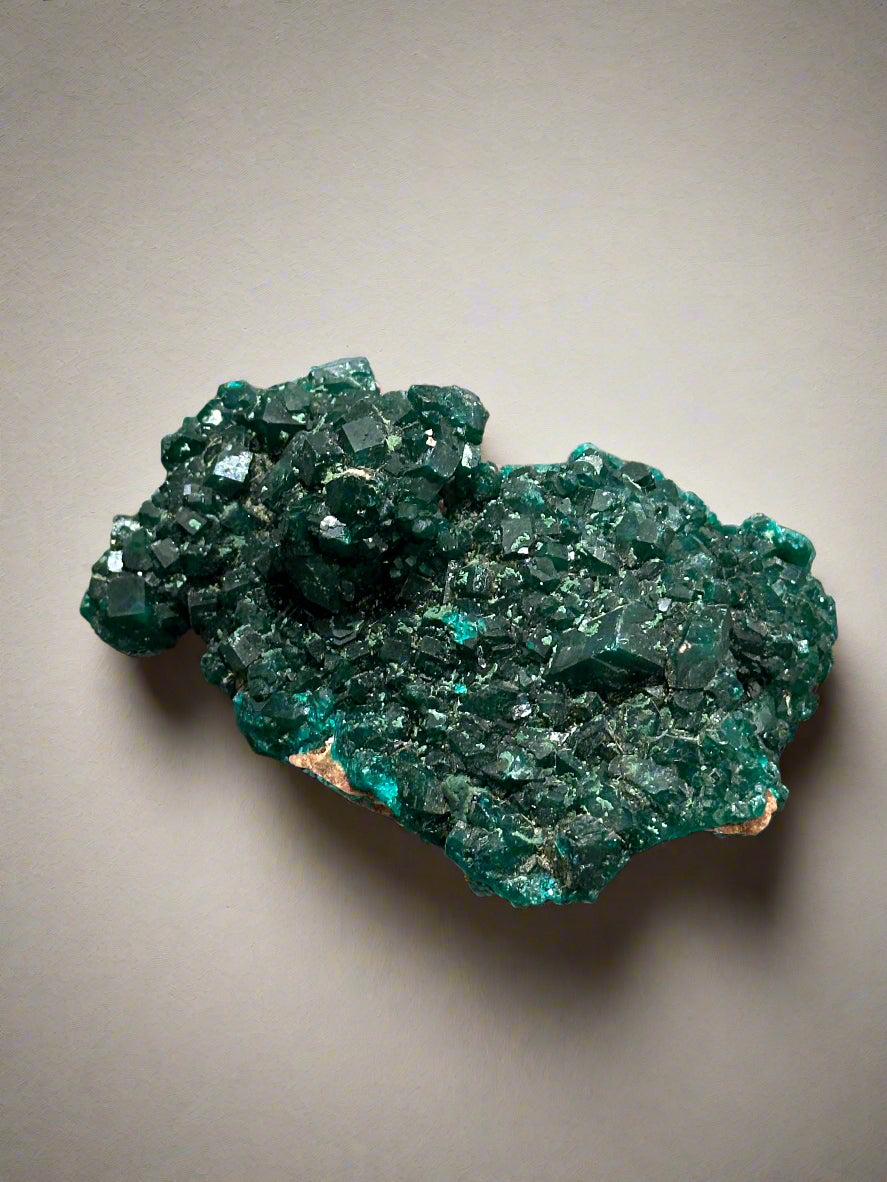 This Dioptase crystal from the Republic of the Congo is a unique find for any collector or enthusiast. With its stunning color and formation, it is a perfect addition to any mineral collection. Mined directly from the source, this crystal offers a true representation of the mineral's beauty.