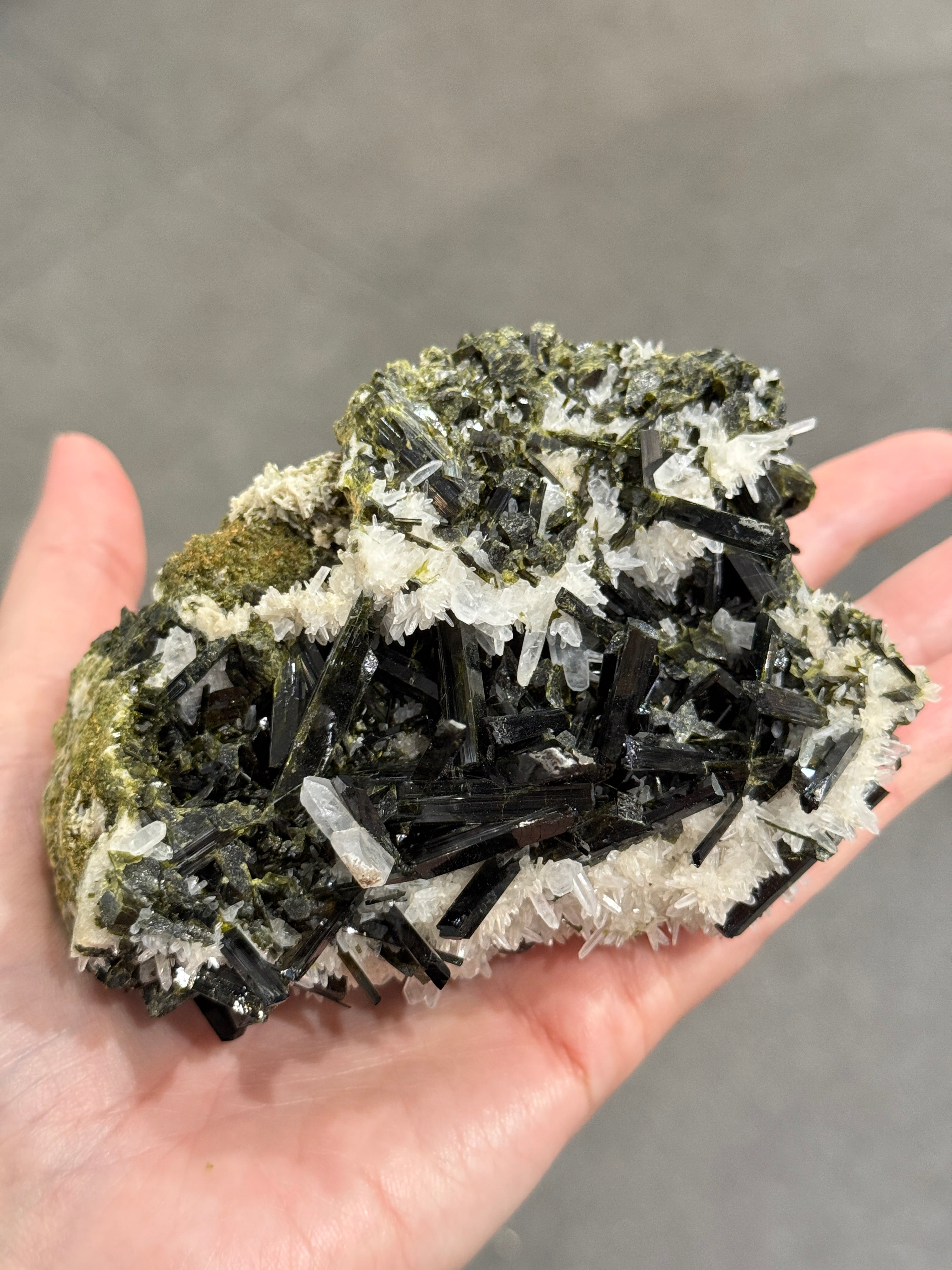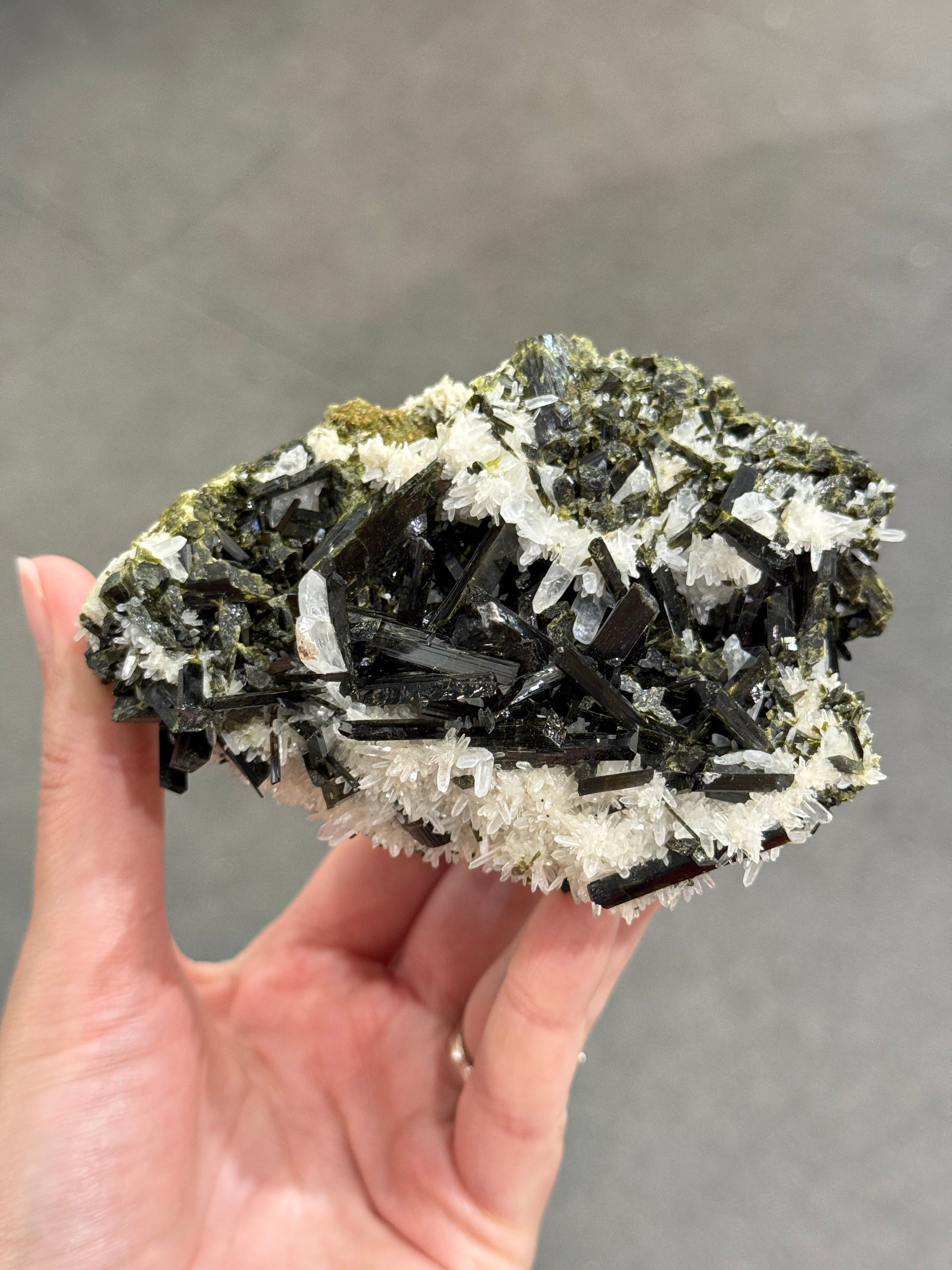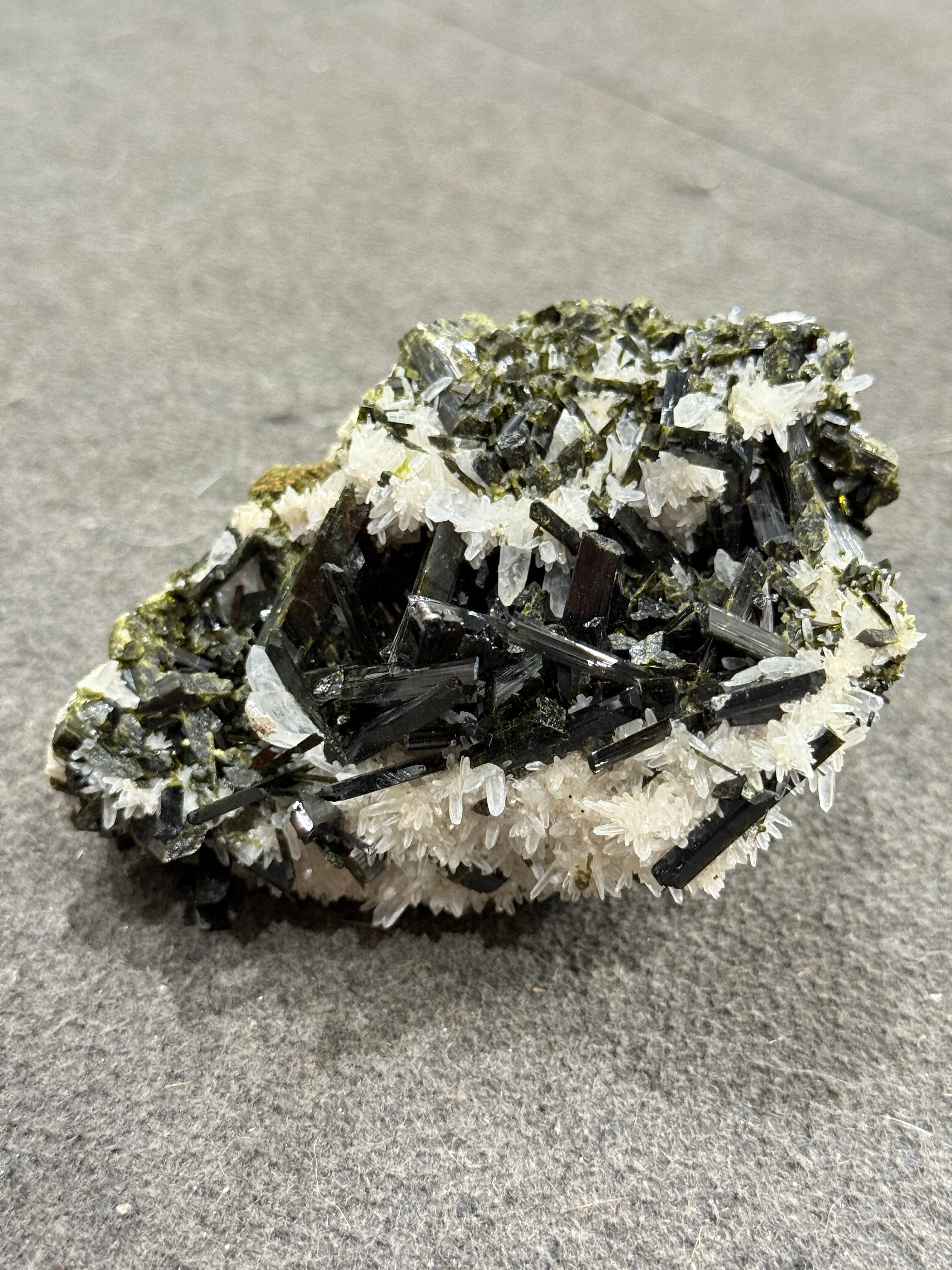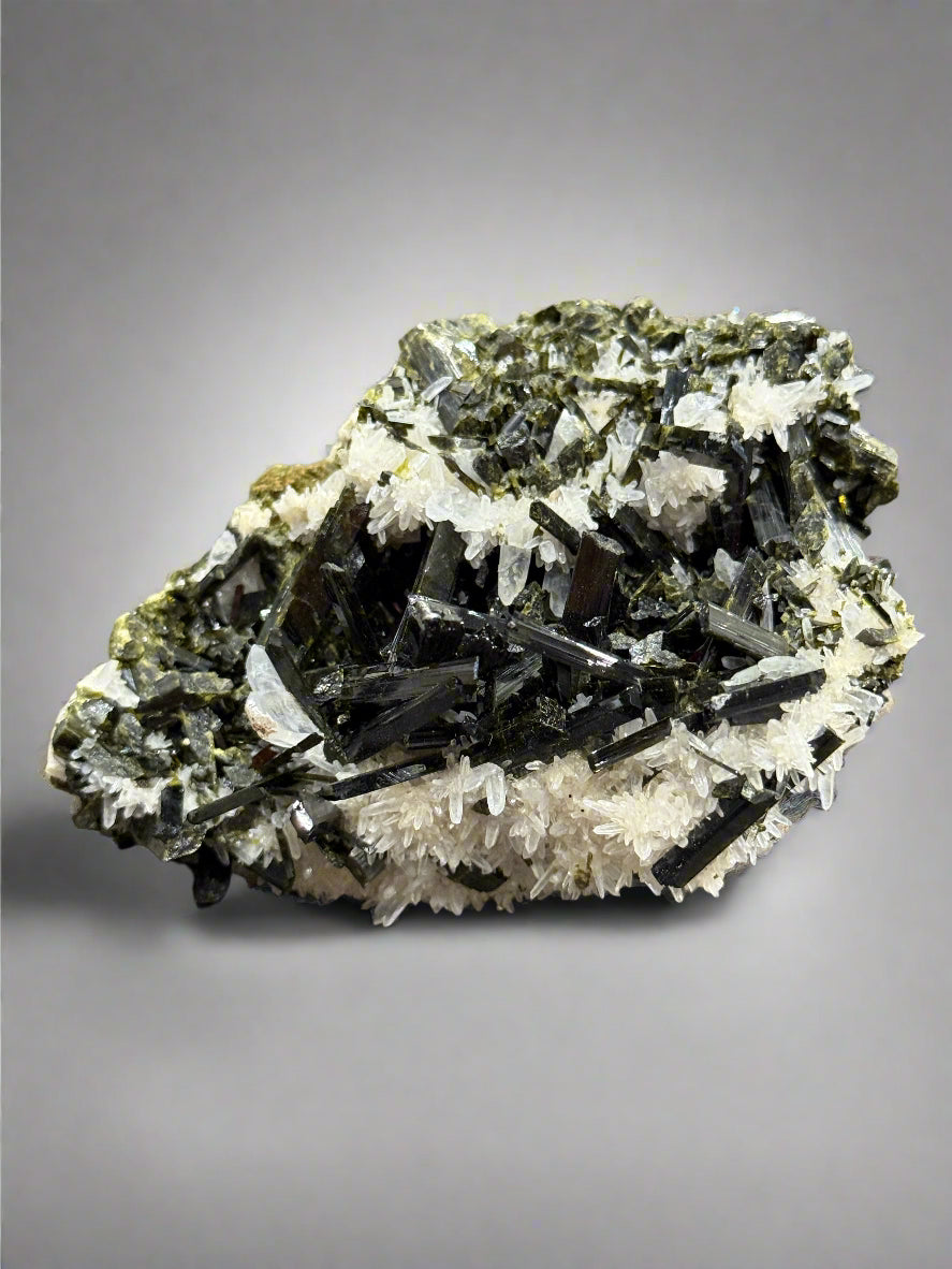 Epidote and Quartz specimens from Turkey showcase a remarkable combination of deep green epidote crystals intertwined with clear to milky quartz formations. These minerals are prized for their distinct crystal habits and vibrant colors, making them valuable for collectors and geological study. Their natural formation offers insight into regional mineralogy and metamorphic processes, providing both aesthetic appeal and scientific interest. Ideal for display or research, these specimens exemplify the unique mineral diversity found in Turkey.