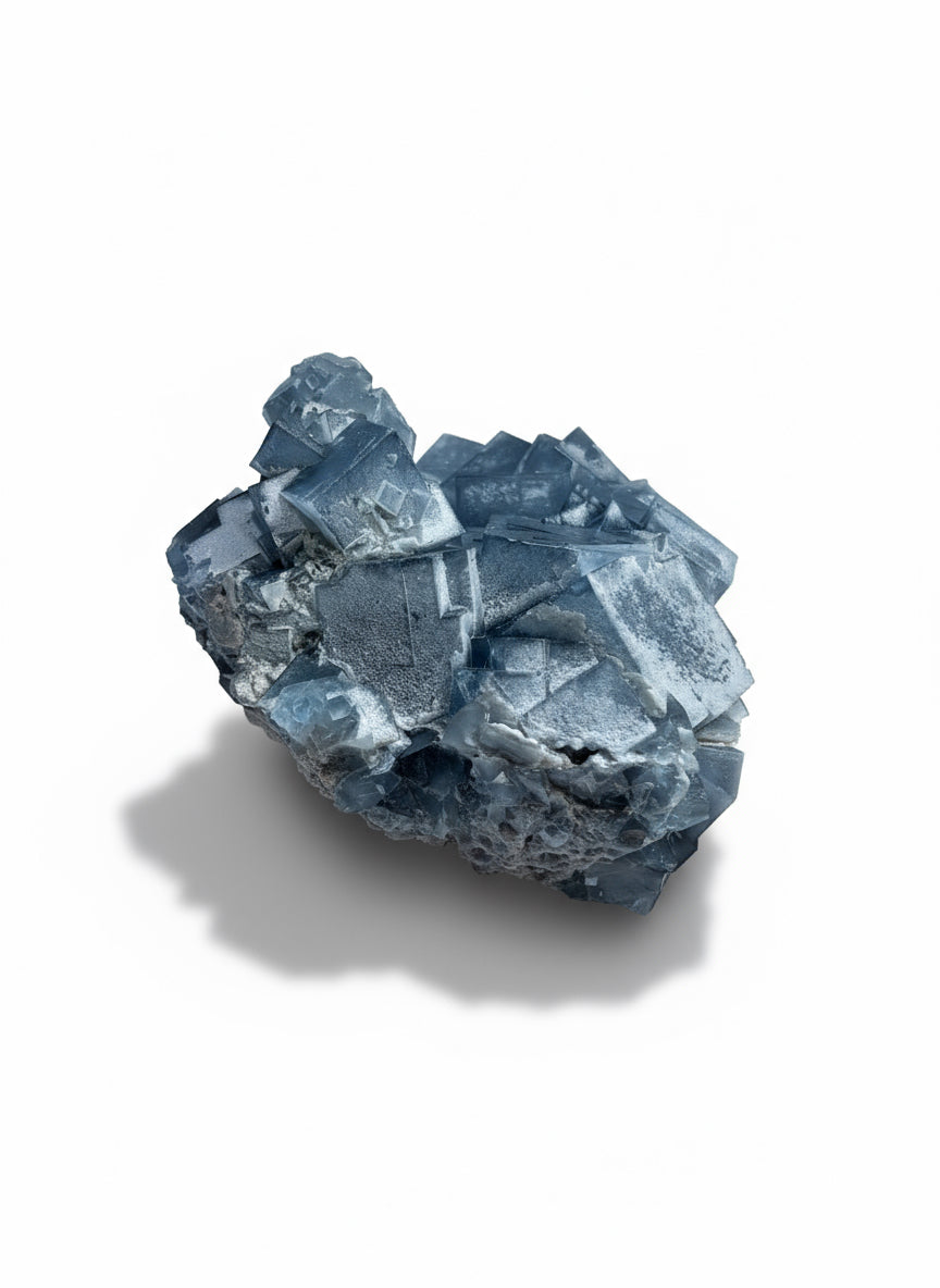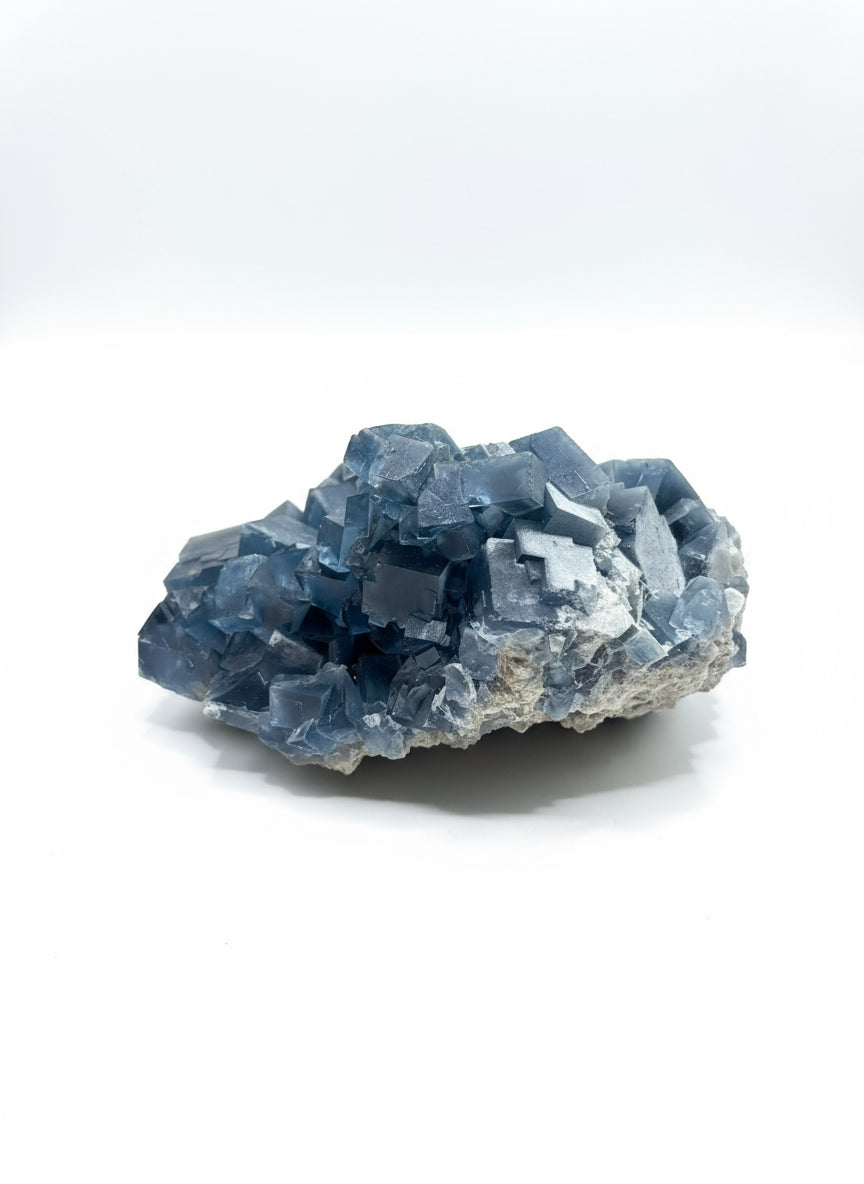 This specimen of Sicilian fluorite displays a captivating blue hue, showcasing the mineral’s characteristic cubic crystal structure. Sourced from the renowned Sicilian deposits, this specimen is prized among collectors and geologists for its vivid color and clarity. Ideal for study or display, it offers insightful representation of fluorite’s unique fluorescence and crystallography.