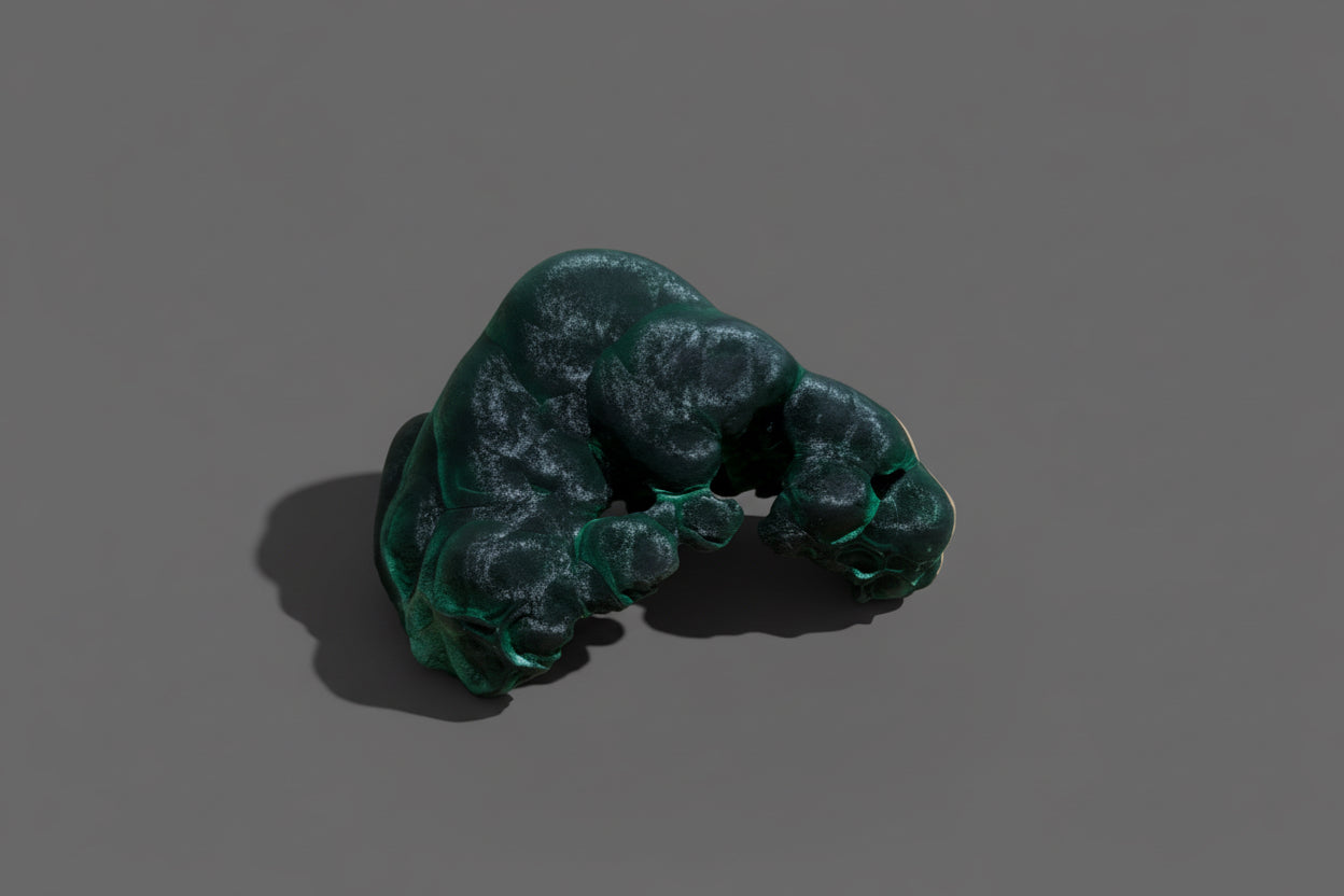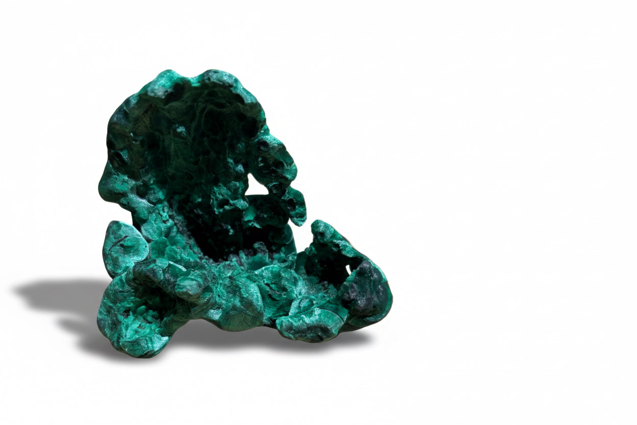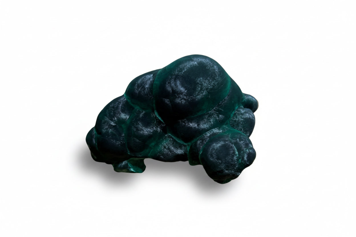 Malachite Velvet displays the distinctive soft, velvety texture characteristic of fine specimens, with rich green banding and subtle chatoyancy reminiscent of a cat's eye effect. This natural mineral showcases the layered patterns formed through copper carbonate oxidation, making it a compelling addition to any serious mineral collection. The velvet-like surface finish enhances its visual depth and tactile appeal, while the luminous green hues demonstrate excellent color saturation. Ideal for collectors seeking specimens with both aesthetic refinement and geological significance.
