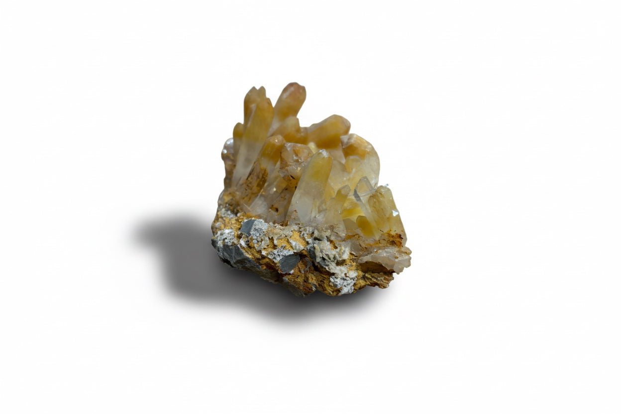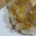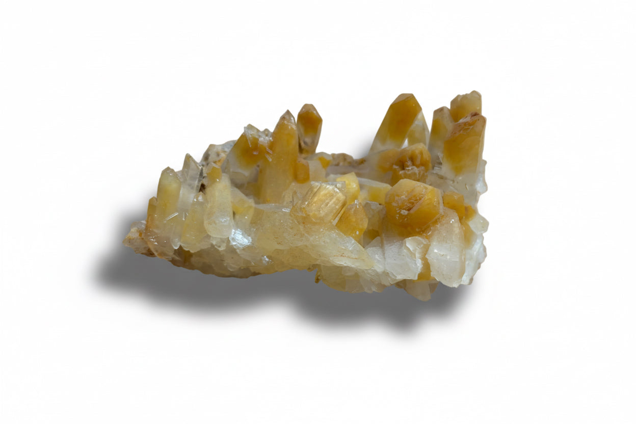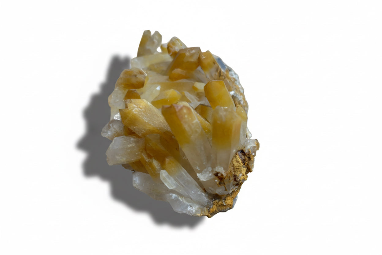 Mango Quartz specimen sourced directly from Colombia's renowned mineral deposits. This striking crystal features warm, peachy-golden hues reminiscent of tropical fruit, with natural clarity and distinctive banding patterns. Perfect for collectors, mineral enthusiasts, and those drawn to its vibrant aesthetic. Each piece showcases the unique geological character of Colombian quartz formations, making it a distinctive addition to any collection or display.