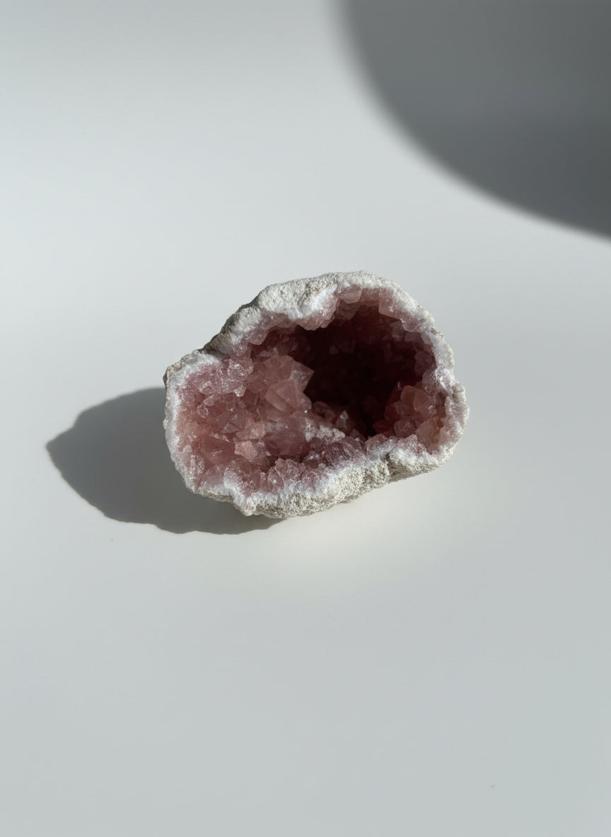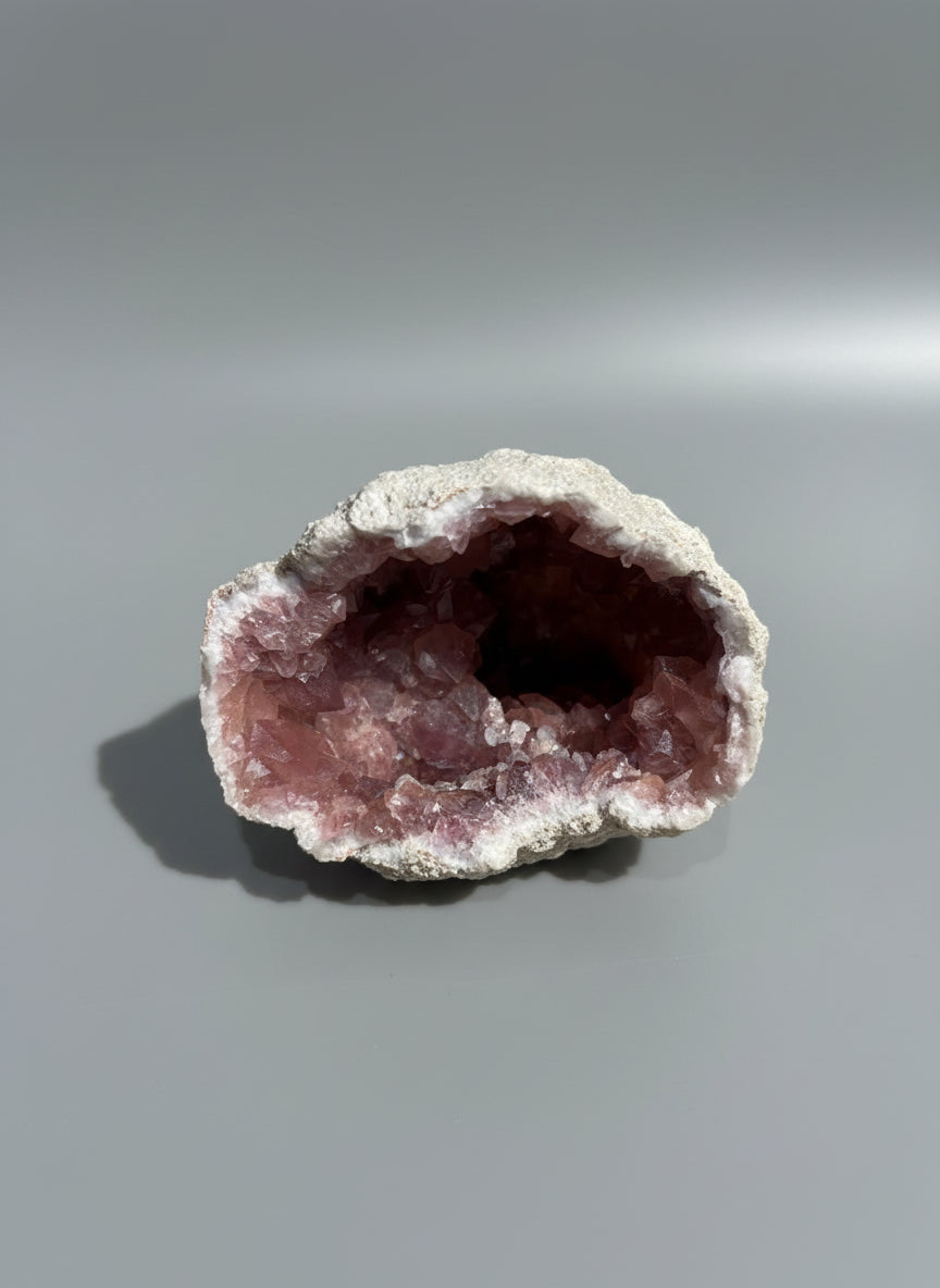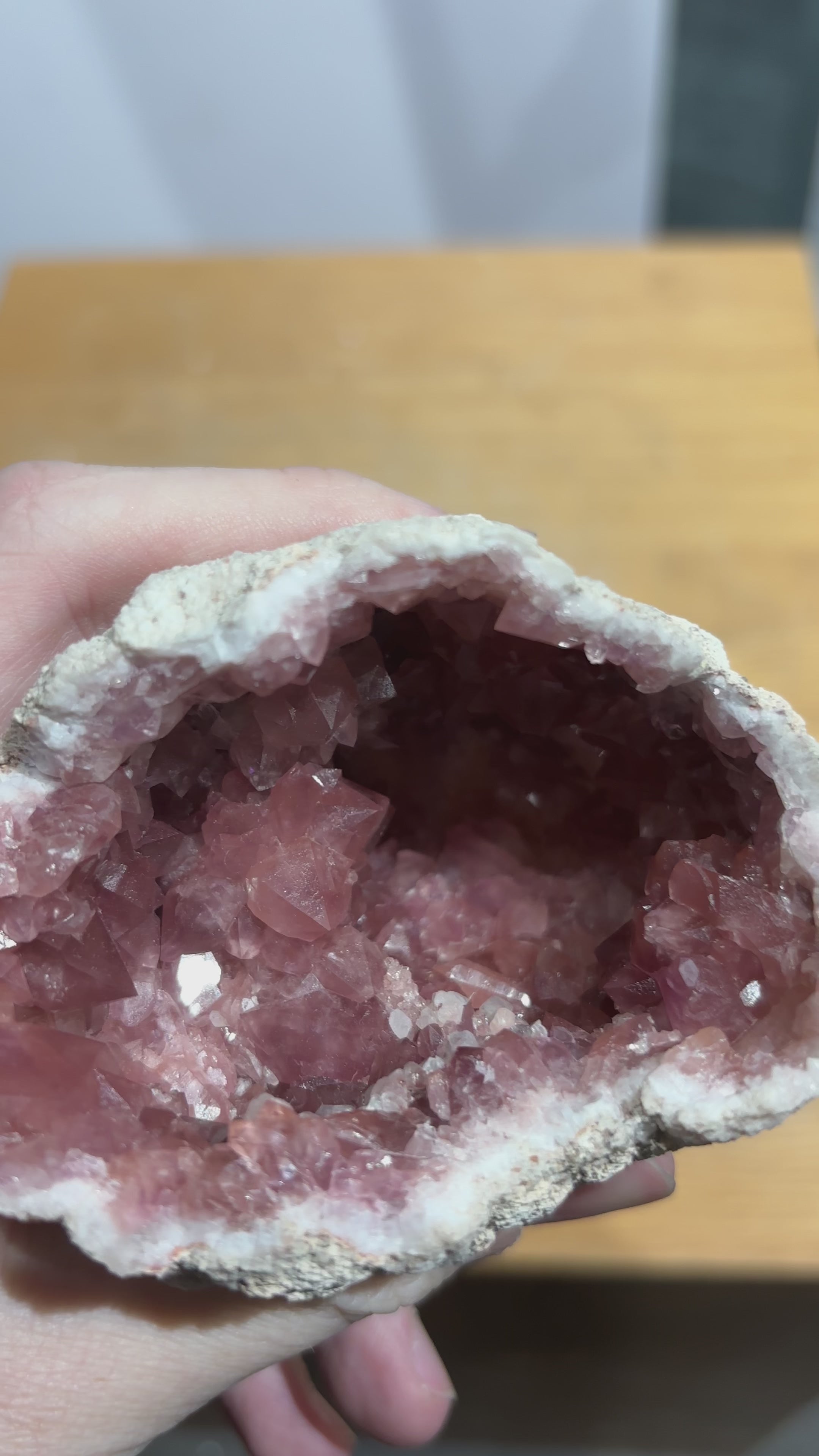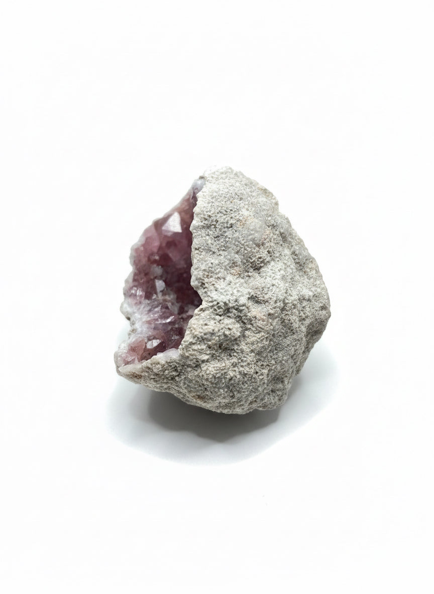 Pink Amethyst specimens showcase delicate rose-hued crystals nestled within natural rock formations, creating striking contrast between the vibrant interior and earthy exterior. Each piece displays the distinctive crystalline structure characteristic of amethyst, with soft pink tones that range from pale blush to deeper mauve. The surrounding matrix provides authentic geological context, making these specimens ideal for collectors, mineral enthusiasts, and those seeking natural decorative elements with genuine geological significance. Perfect for display, study, or adding refined natural beauty to any space.