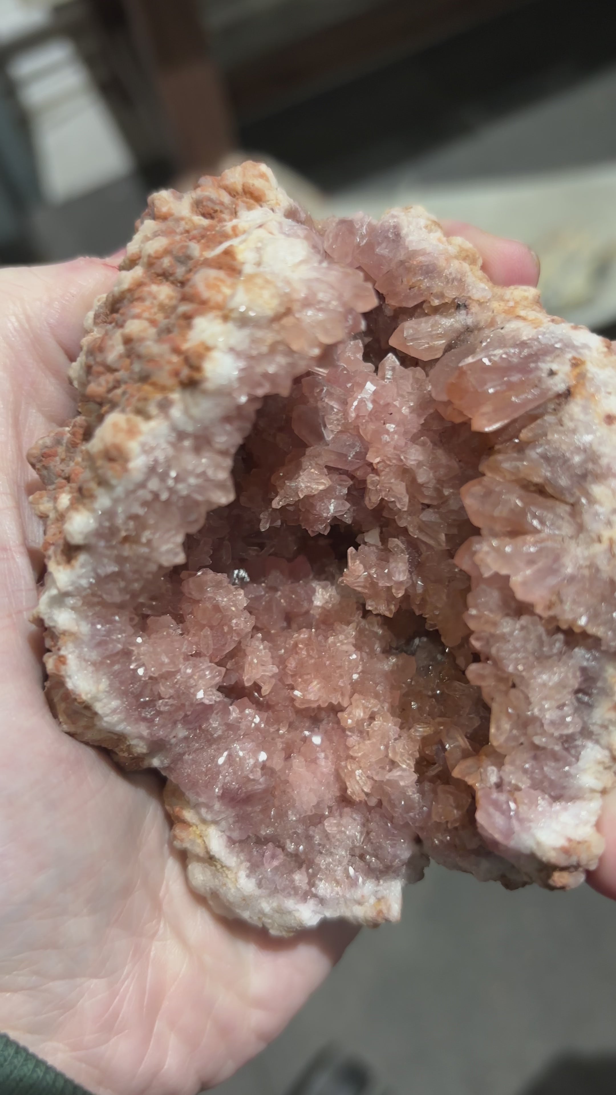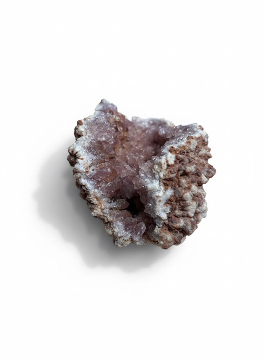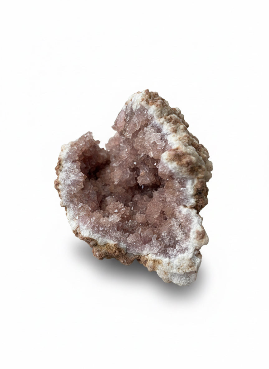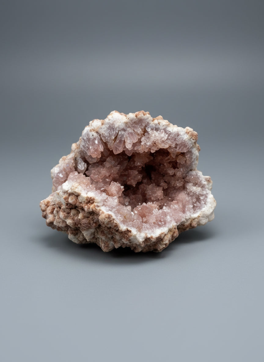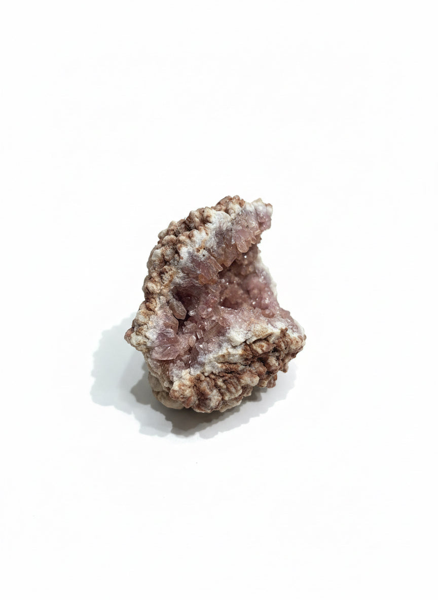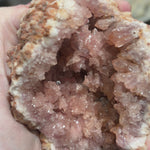 Pink Amethyst specimens showcase delicate rose-hued crystals nestled within natural rock formations, creating striking contrast between the vibrant interior and earthy exterior. Each piece displays the distinctive crystalline structure characteristic of amethyst, with soft pink tones that range from pale blush to deeper mauve. The surrounding matrix provides authentic geological context, making these specimens ideal for collectors, mineral enthusiasts, and those seeking natural decorative elements with genuine geological significance. Perfect for display, study, or adding refined natural beauty to any space.