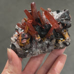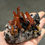 This Red Quartz with Hematite Roses crystal from China is a stunning addition to any collection. Its vibrant red color and unique hematite rose formations give this crystal a unique and eye-catching appearance. Don't miss out on this one-of-a-kind piece!