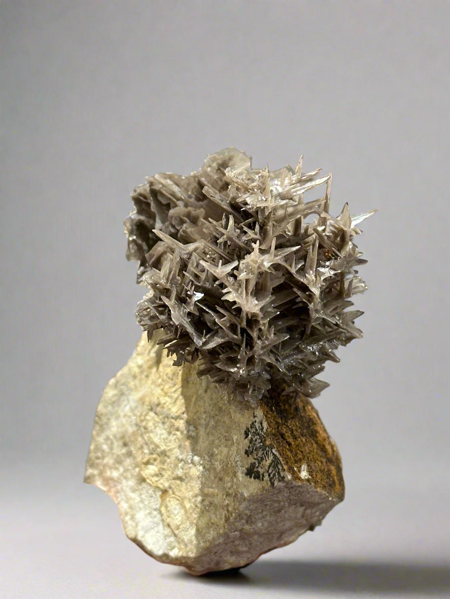 Snowflake Cerussite is a mineral specimen with unique snowflake-shaped crystals, forming naturally in hexagonal shapes. Its beautiful and intricate patterns add a touch of elegance to any collection. With a Mohs hardness of 2.5-3, it is a soft material, but its fragility makes it an excellent choice for display.