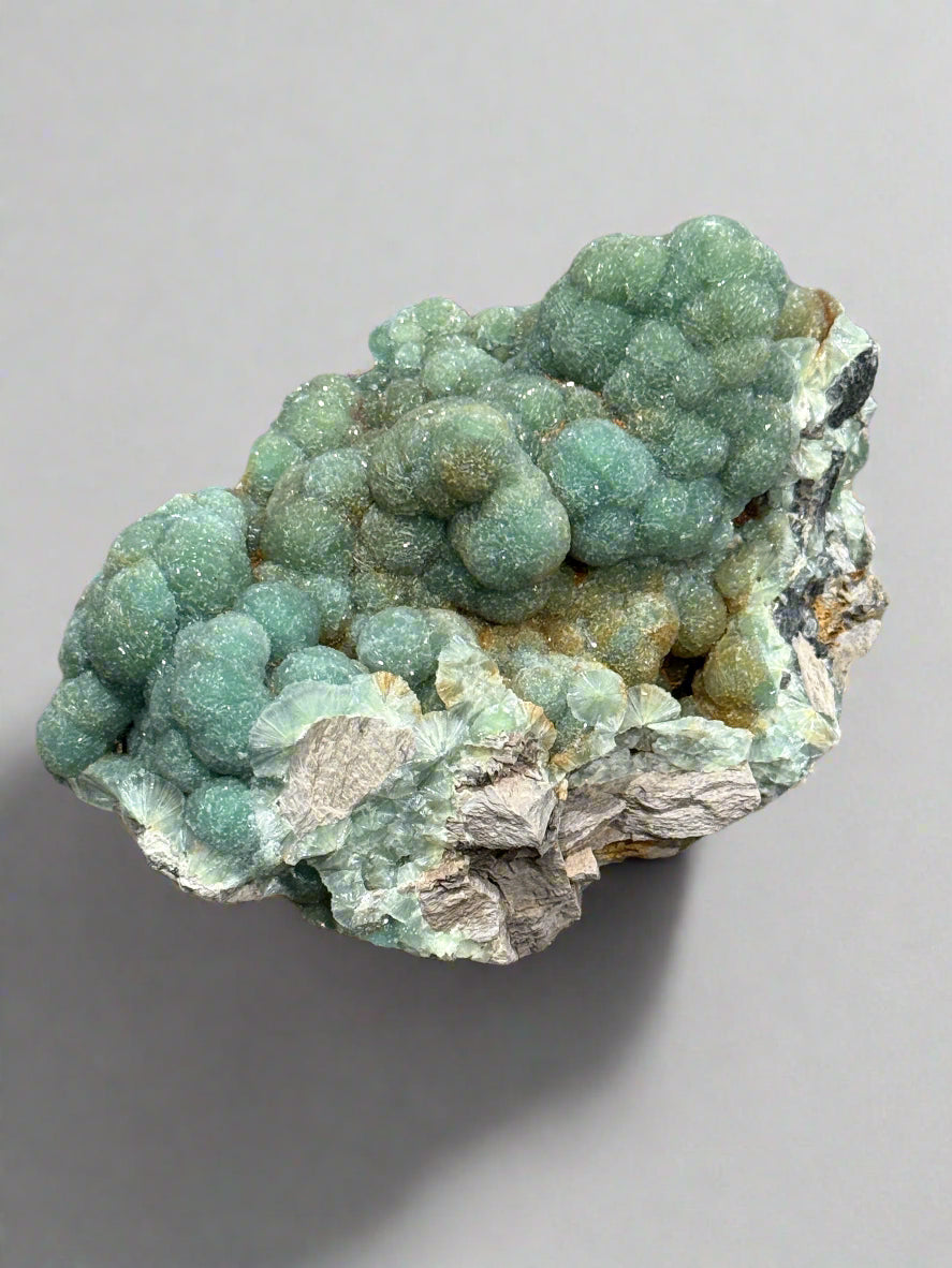 Wavellite from Maudlin Mountain, Arkansas presents a distinctive mineral specimen characterized by its radiating spherical aggregates of needle-like crystals. This phosphate mineral displays vibrant green to blue-green hues with exceptional luster. Collectors prize these Arkansas specimens for their exceptional formation quality, structural integrity, and aesthetic appeal. Each piece offers a unique representation of this relatively uncommon mineral, making it a valuable addition to serious mineralogical collections.