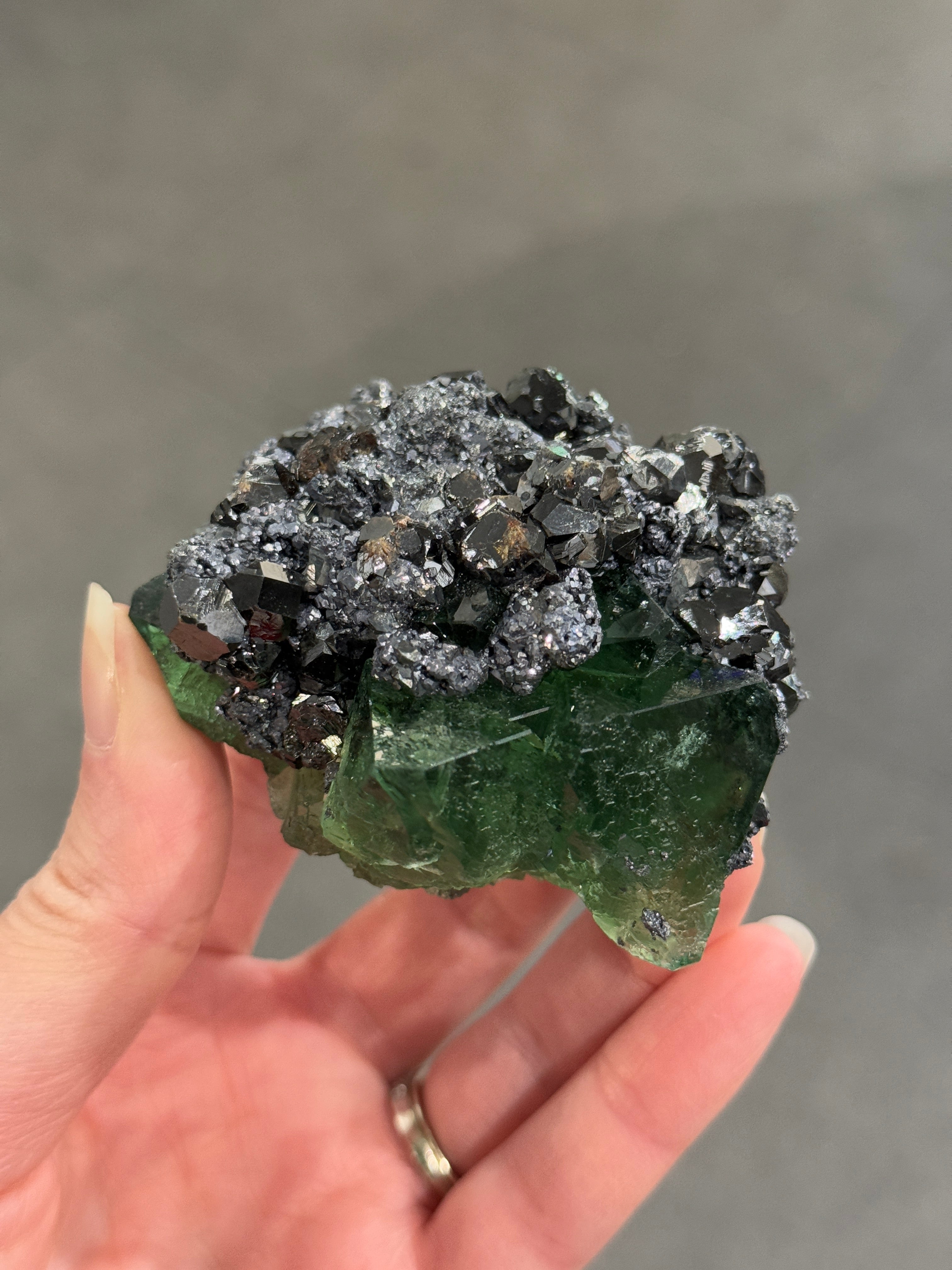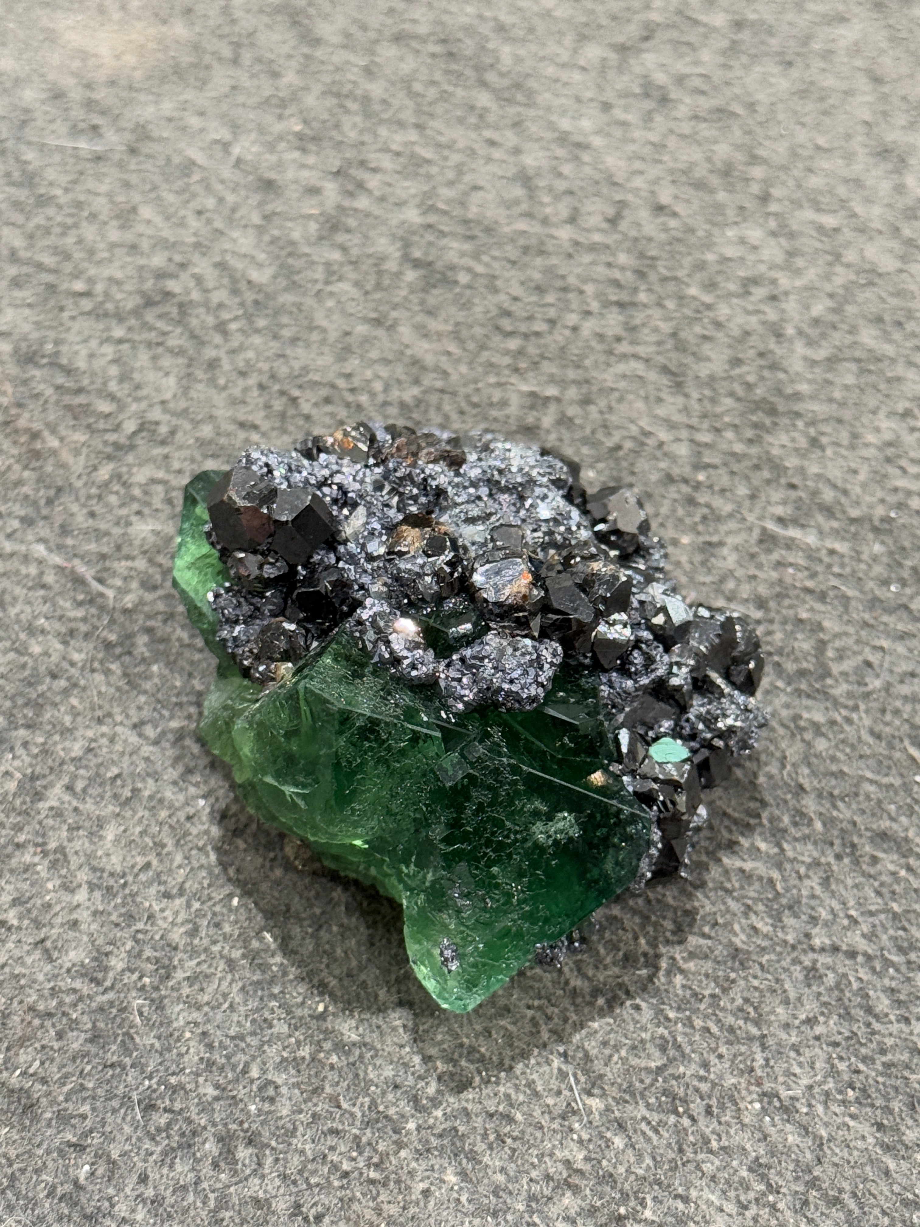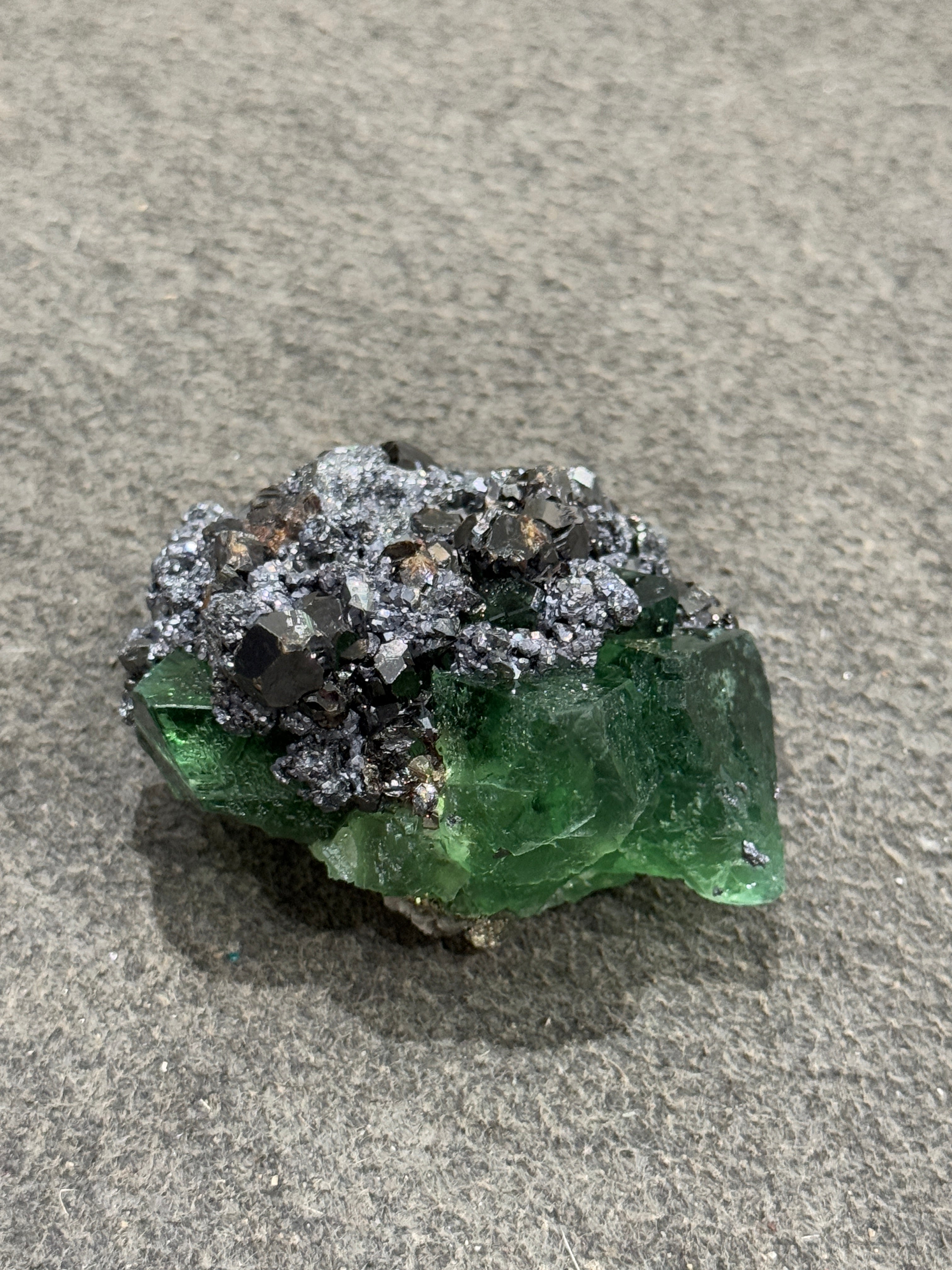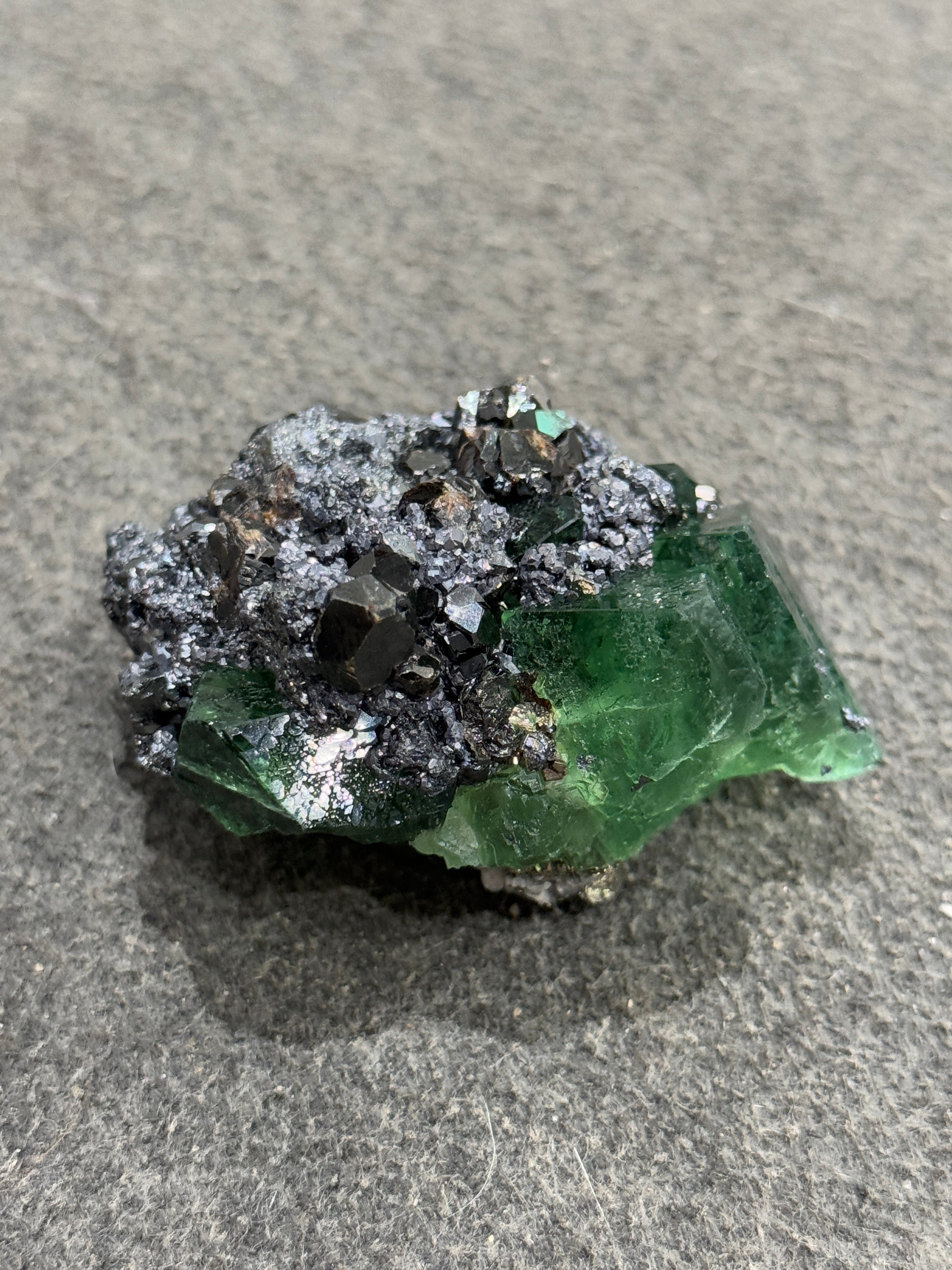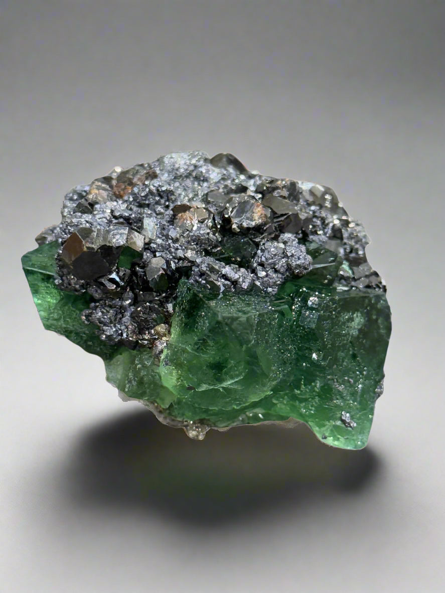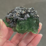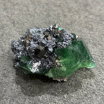 Discover the unique beauty of Peruvian Fluorite with Hematite. This stunning gemstone boasts a combination of vibrant colors and metallic tones, making it a truly one-of-a-kind piece. With its natural origins and eye-catching appearance, this gemstone is perfect for collectors.