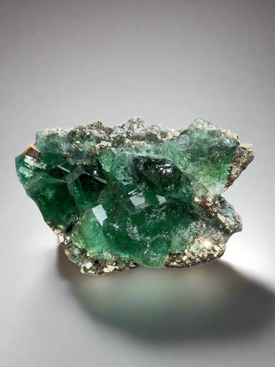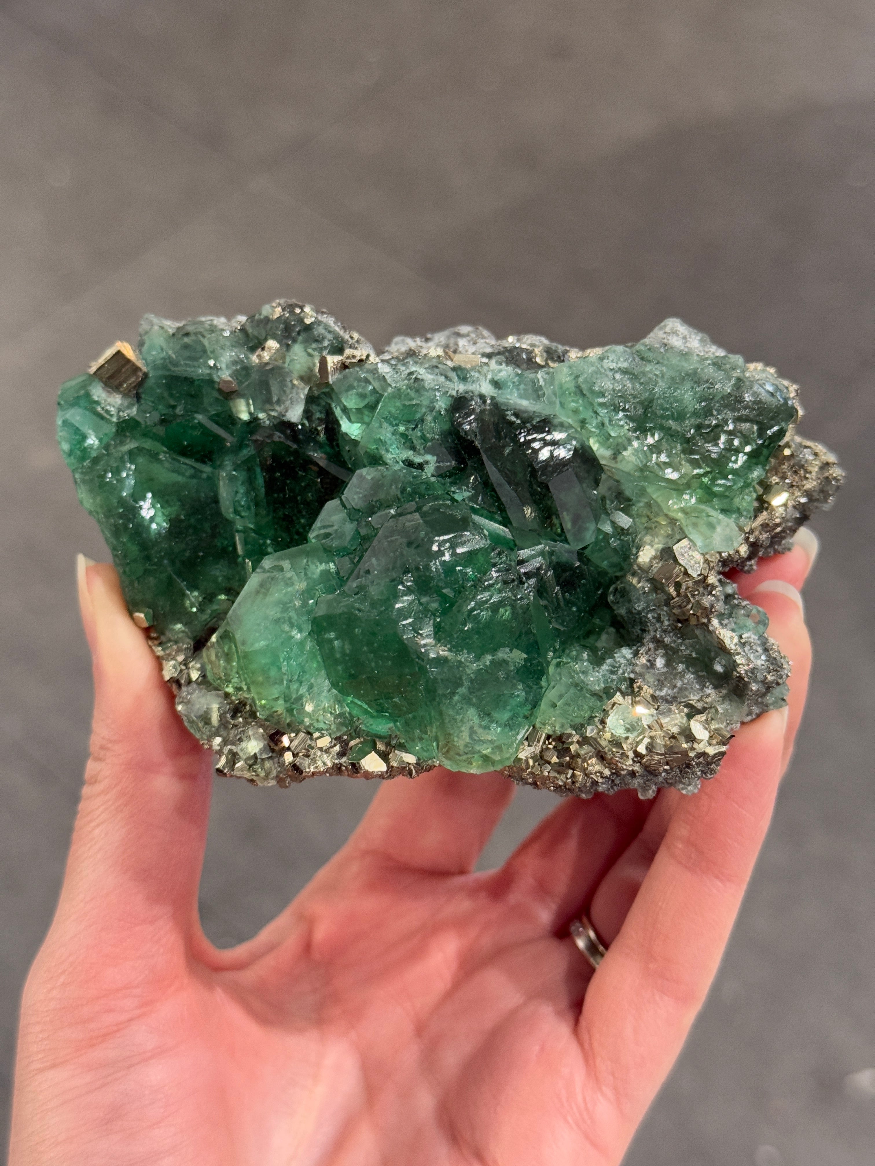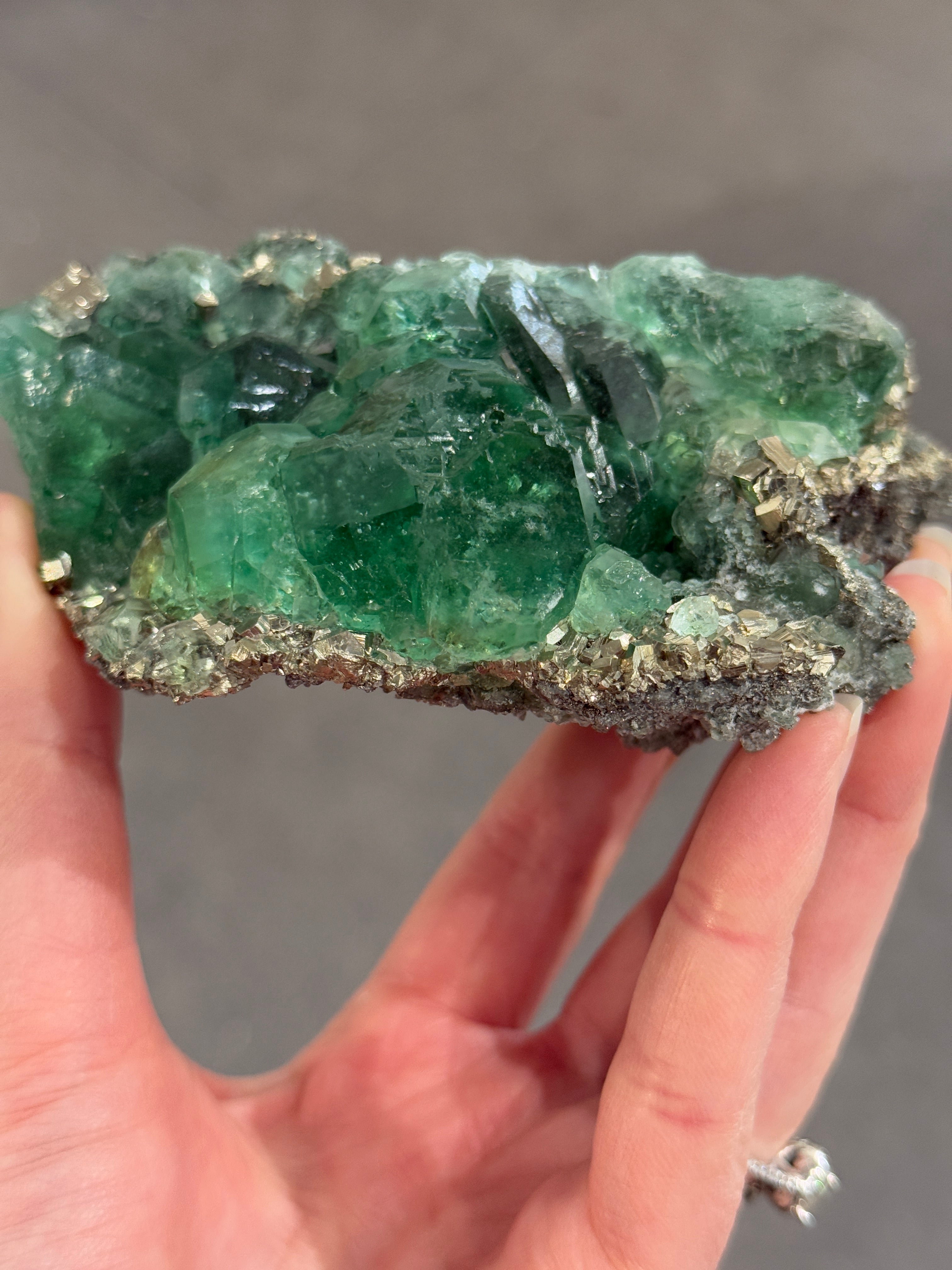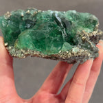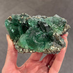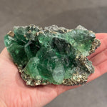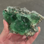 This piece of Peruvian Fluorite with Pyrite is a stunning addition to any crystal collection. With its vibrant colors and unique composition, it is sure to catch the eye of any crystal enthusiast.