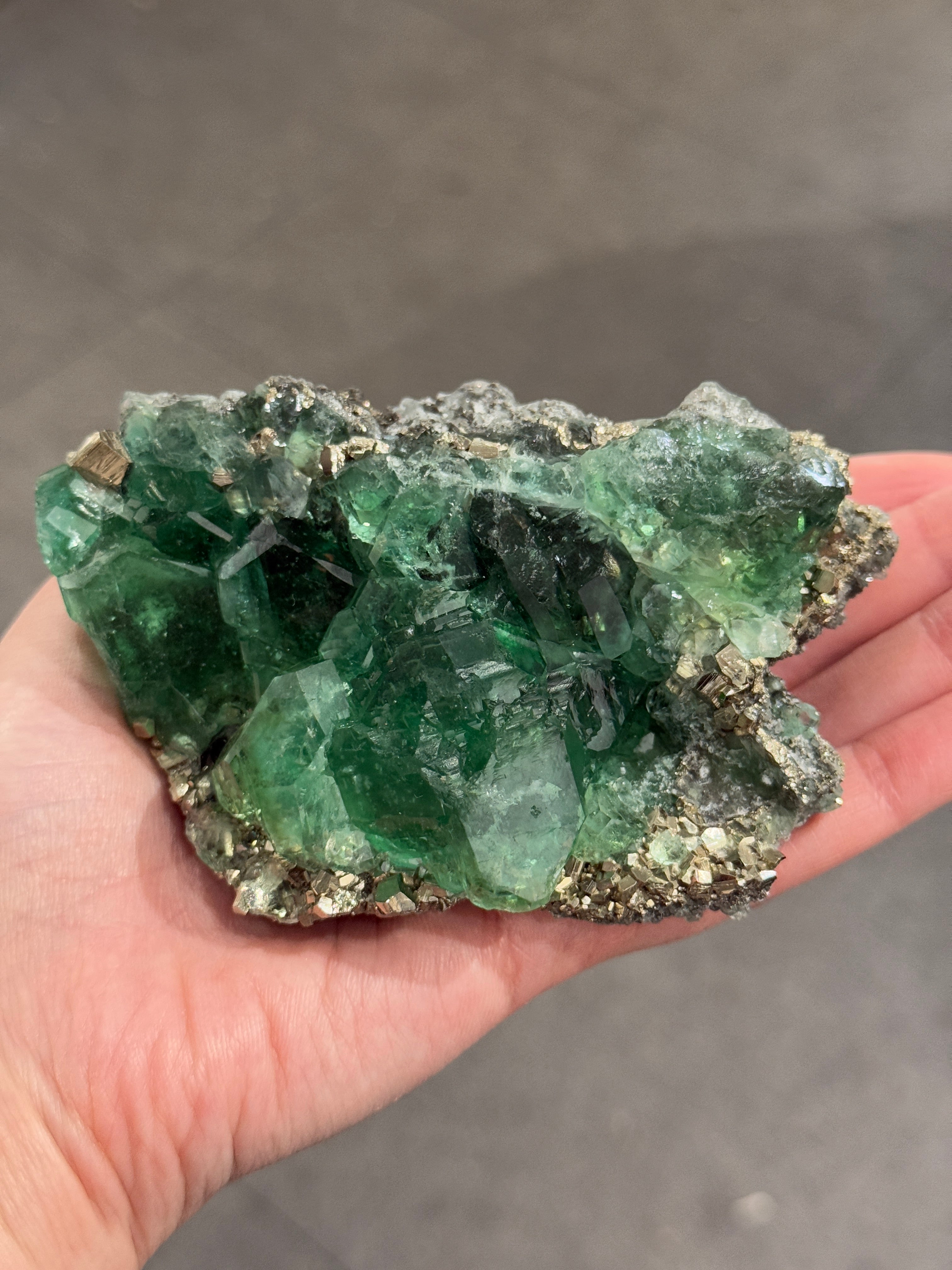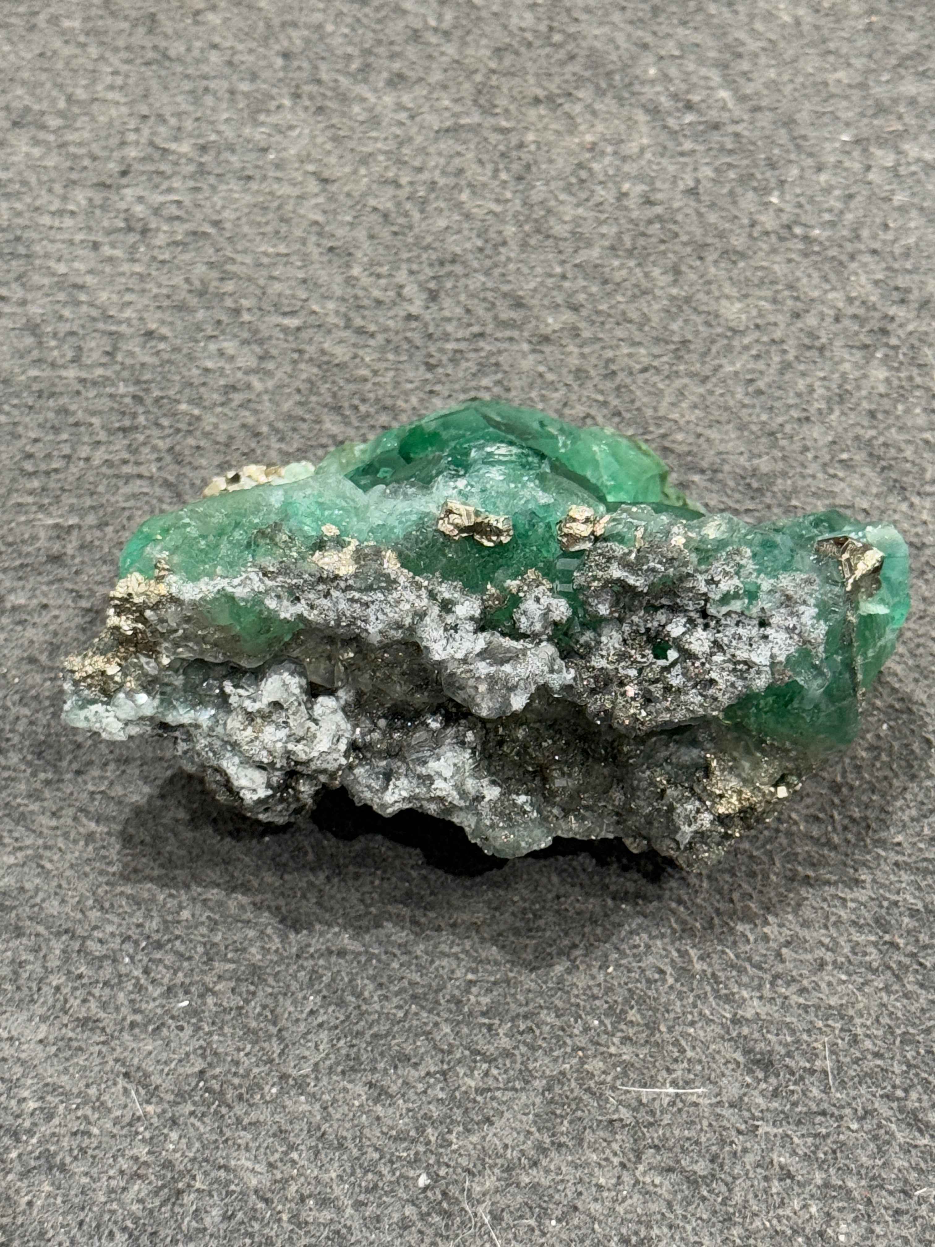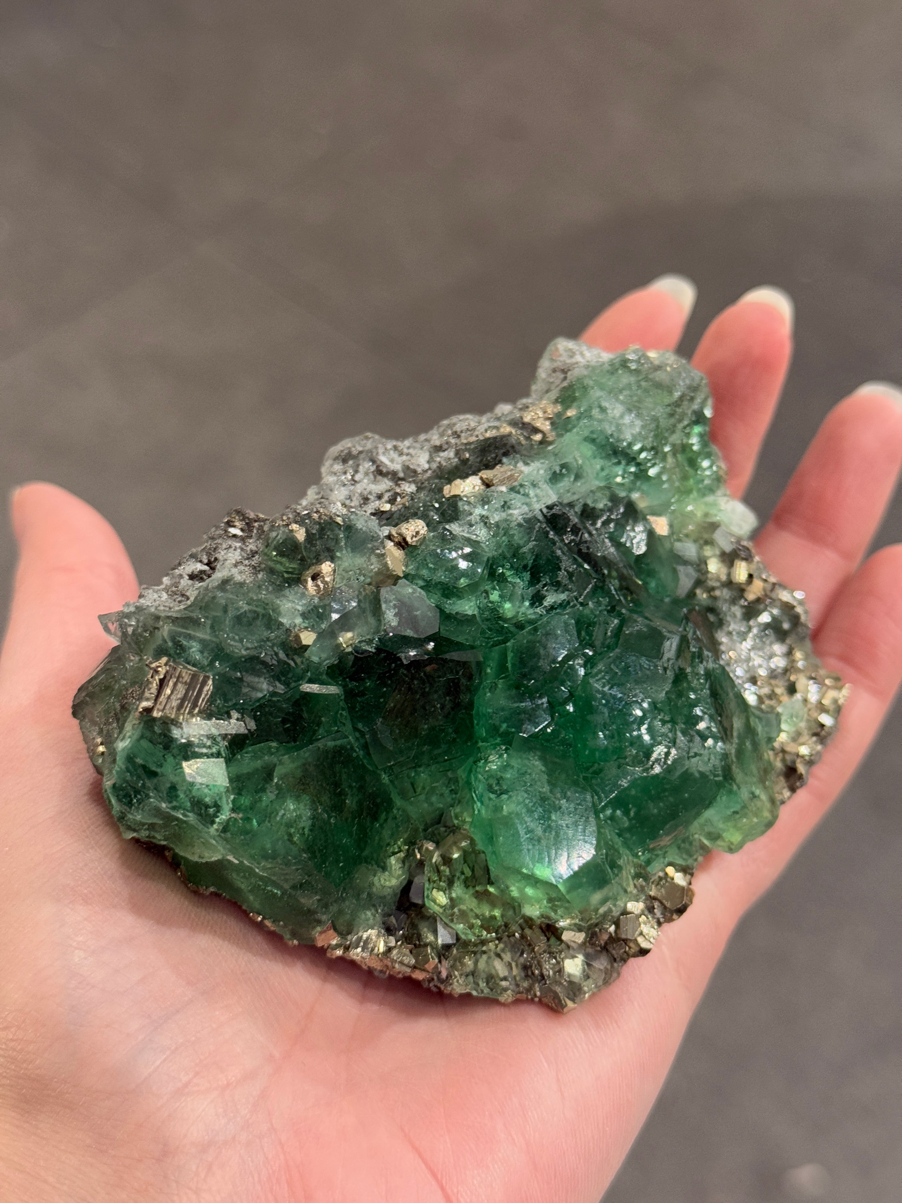 This piece of Peruvian Fluorite with Pyrite is a stunning addition to any crystal collection. With its vibrant colors and unique composition, it is sure to catch the eye of any crystal enthusiast.