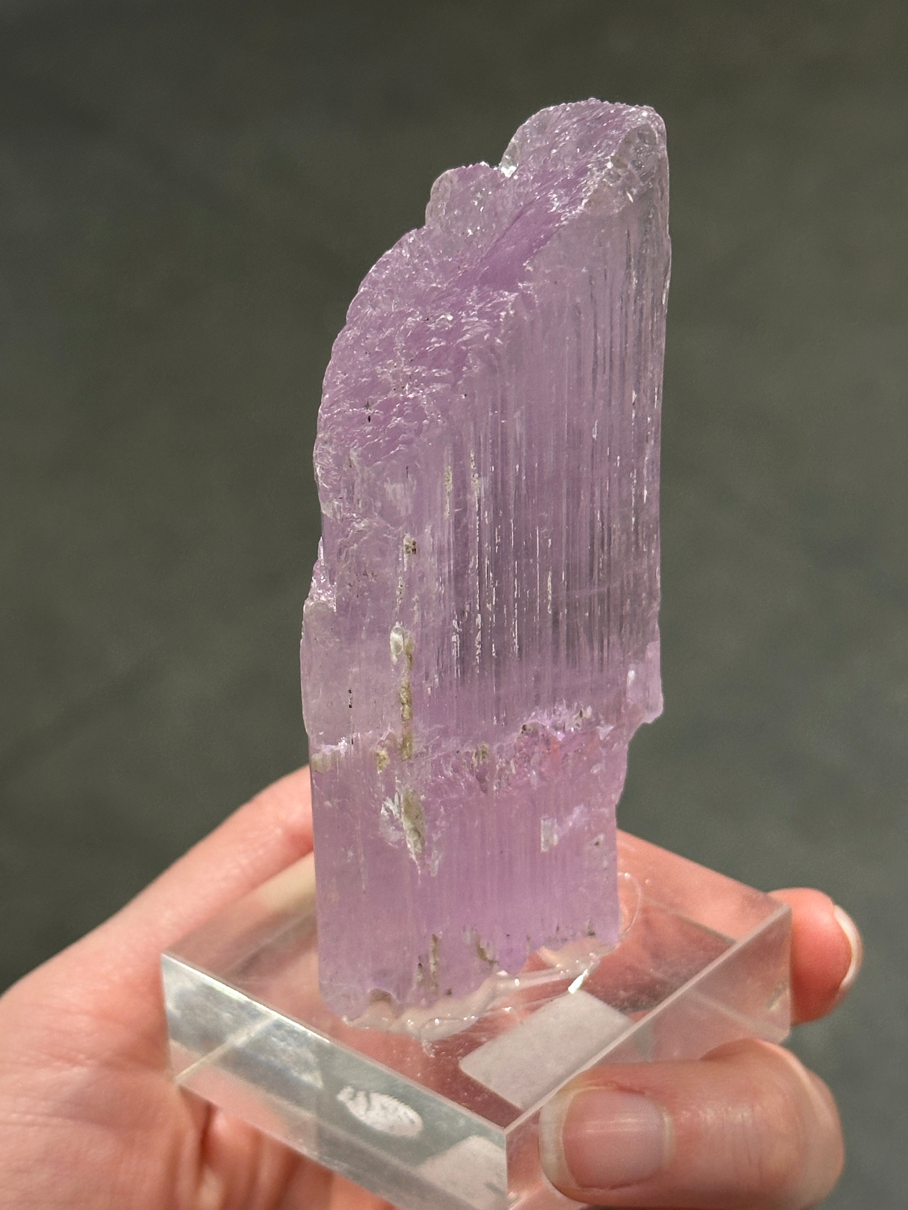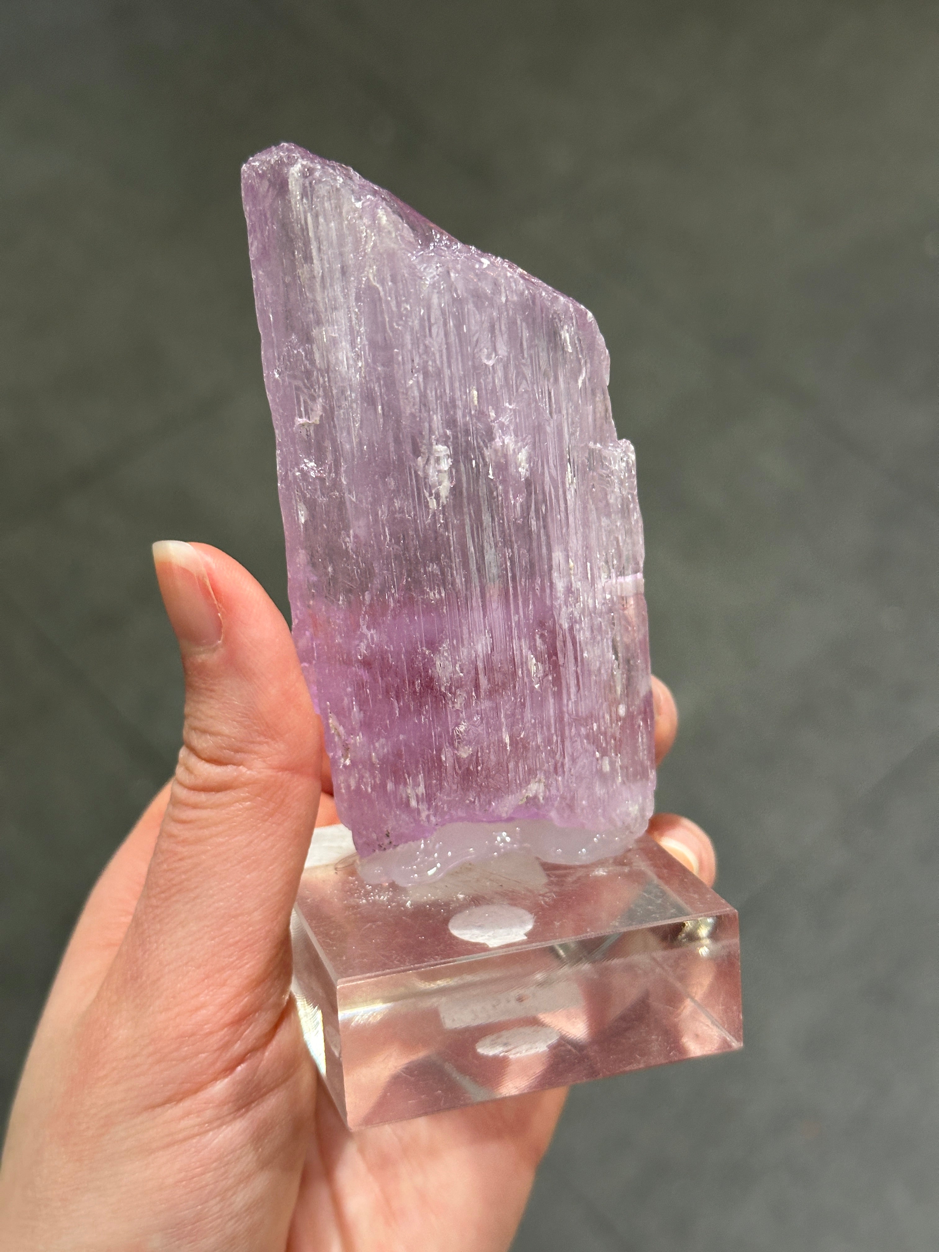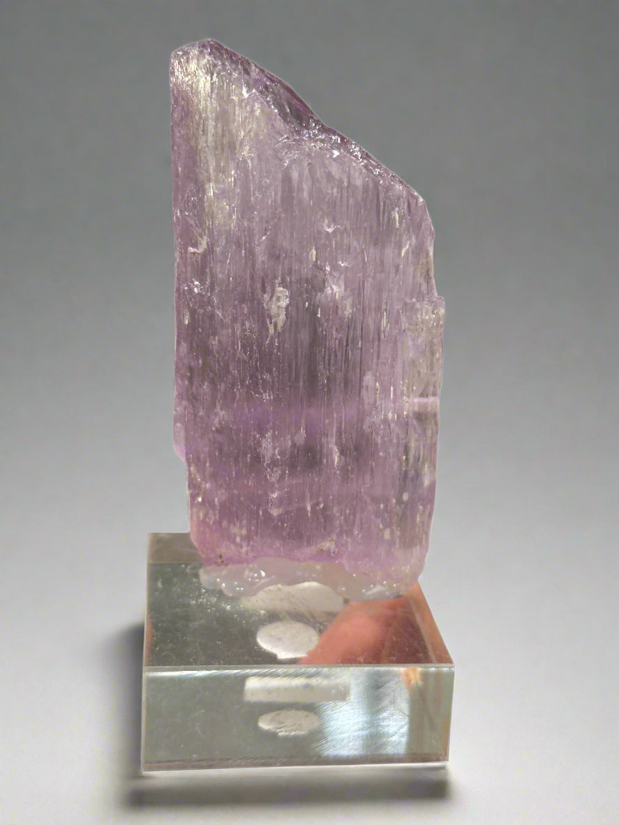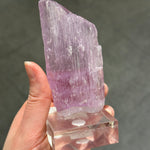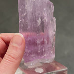 This Kunzite crystal, sourced from Pakistan, is known for its beautiful shades of pink and purple.