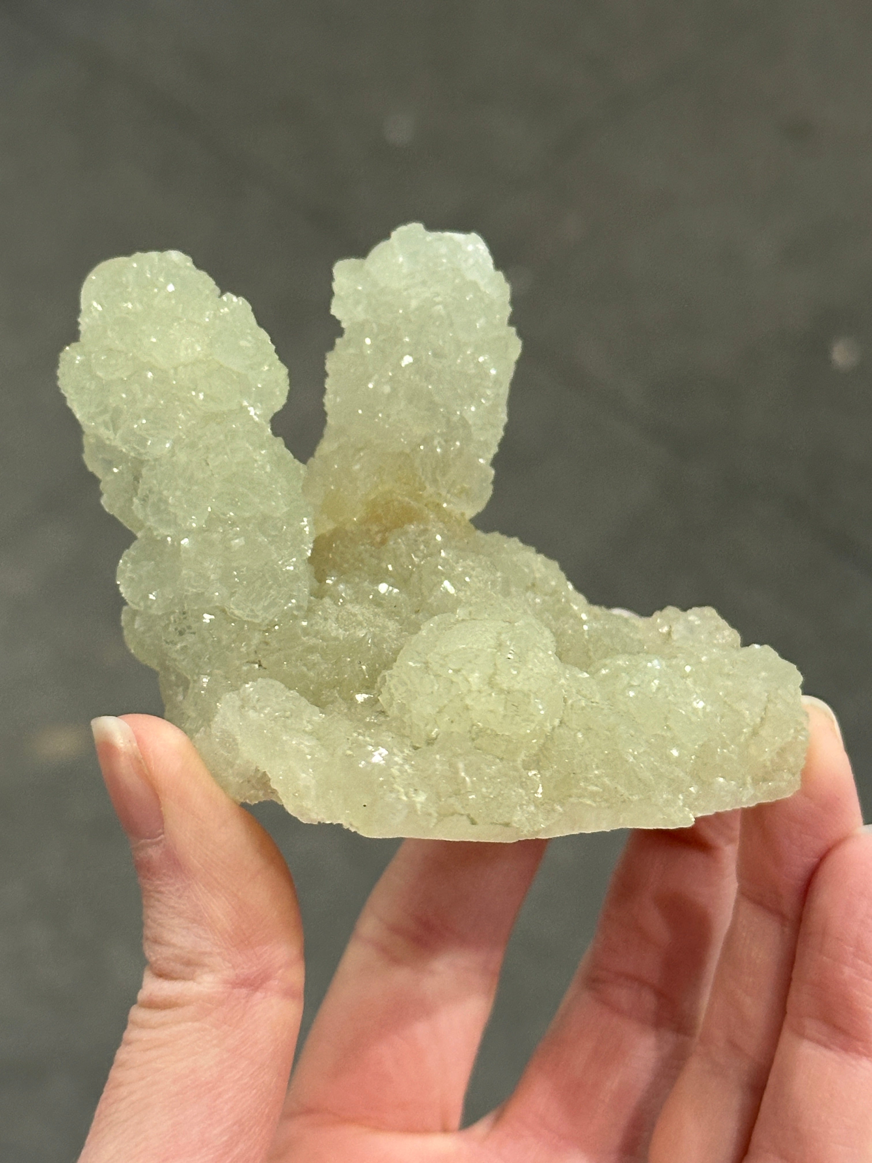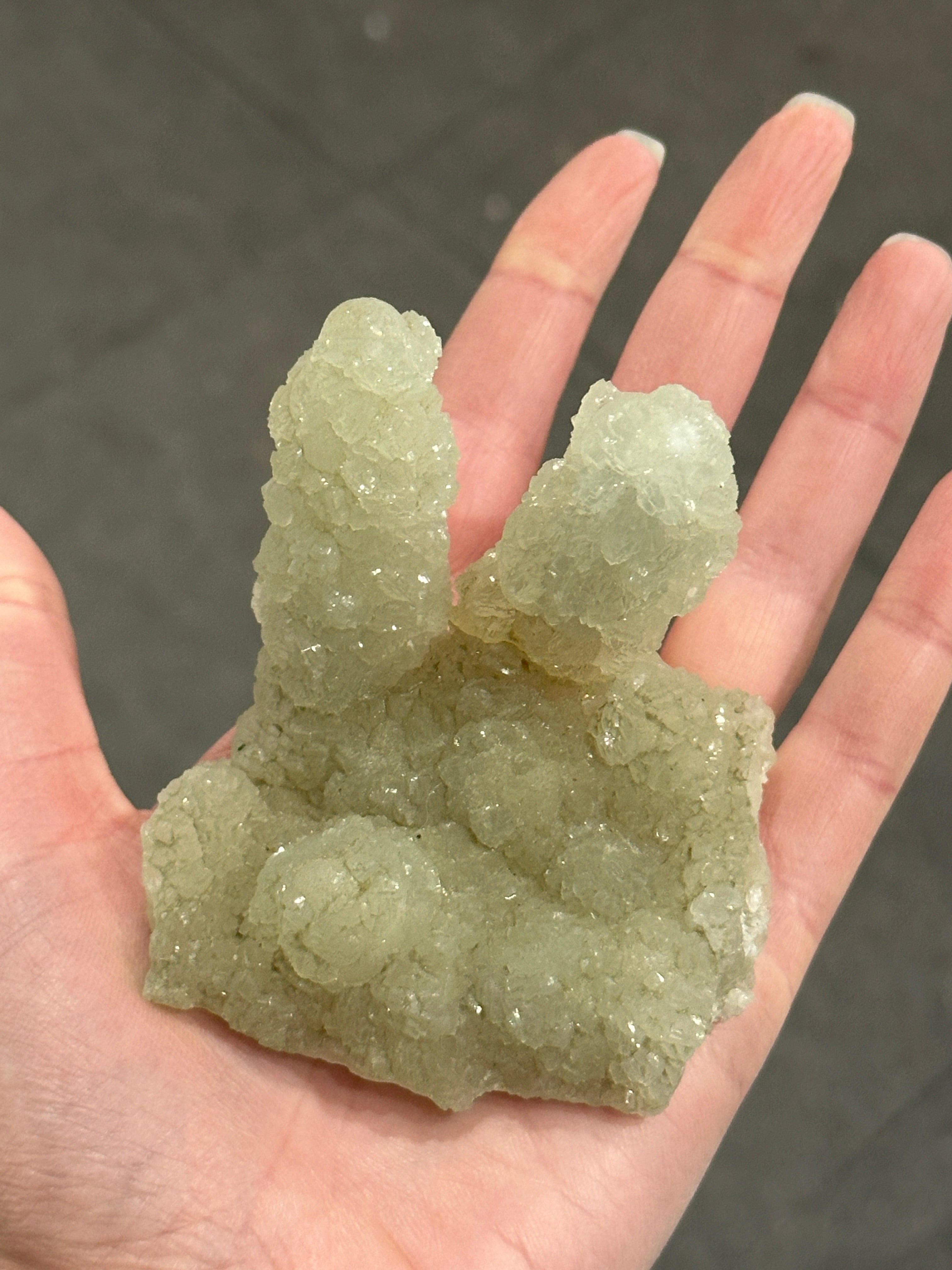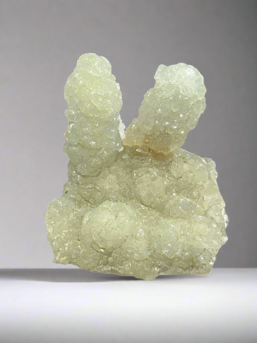 Discover the unique beauty of Prehnite from New Jersey. This mineral combines a distinctive green color with a translucent appearance, making it a desirable addition to any collection. With its unique qualities and shape, this piece of Prehnite is a must-have for mineral enthusiasts.