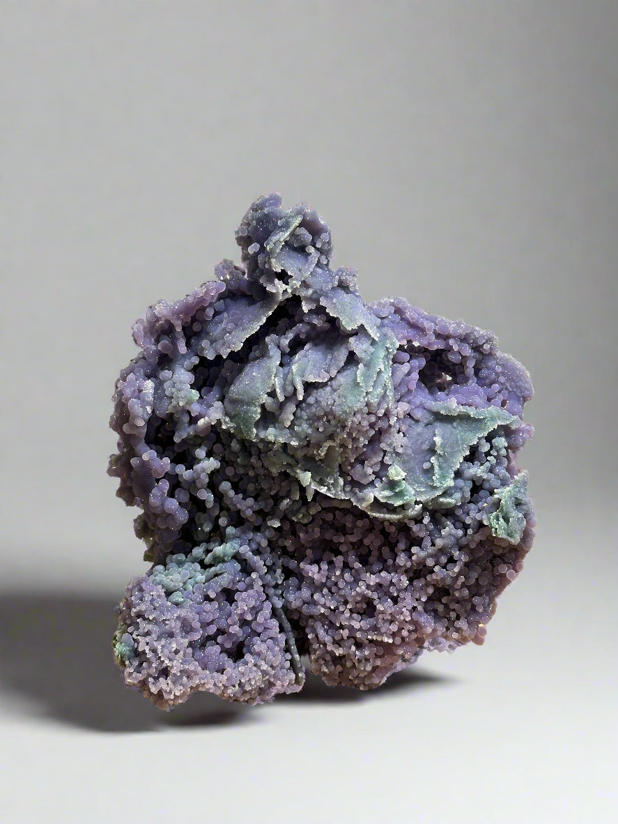 Discover the stunning beauty of Grape Agate, a rare crystal found primarily in Indonesia. With its unique grape-like clusters, sparkle, and intricate patterns, this piece is perfect for collectors or anyone seeking a one-of-a-kind piece for their crystal collection.