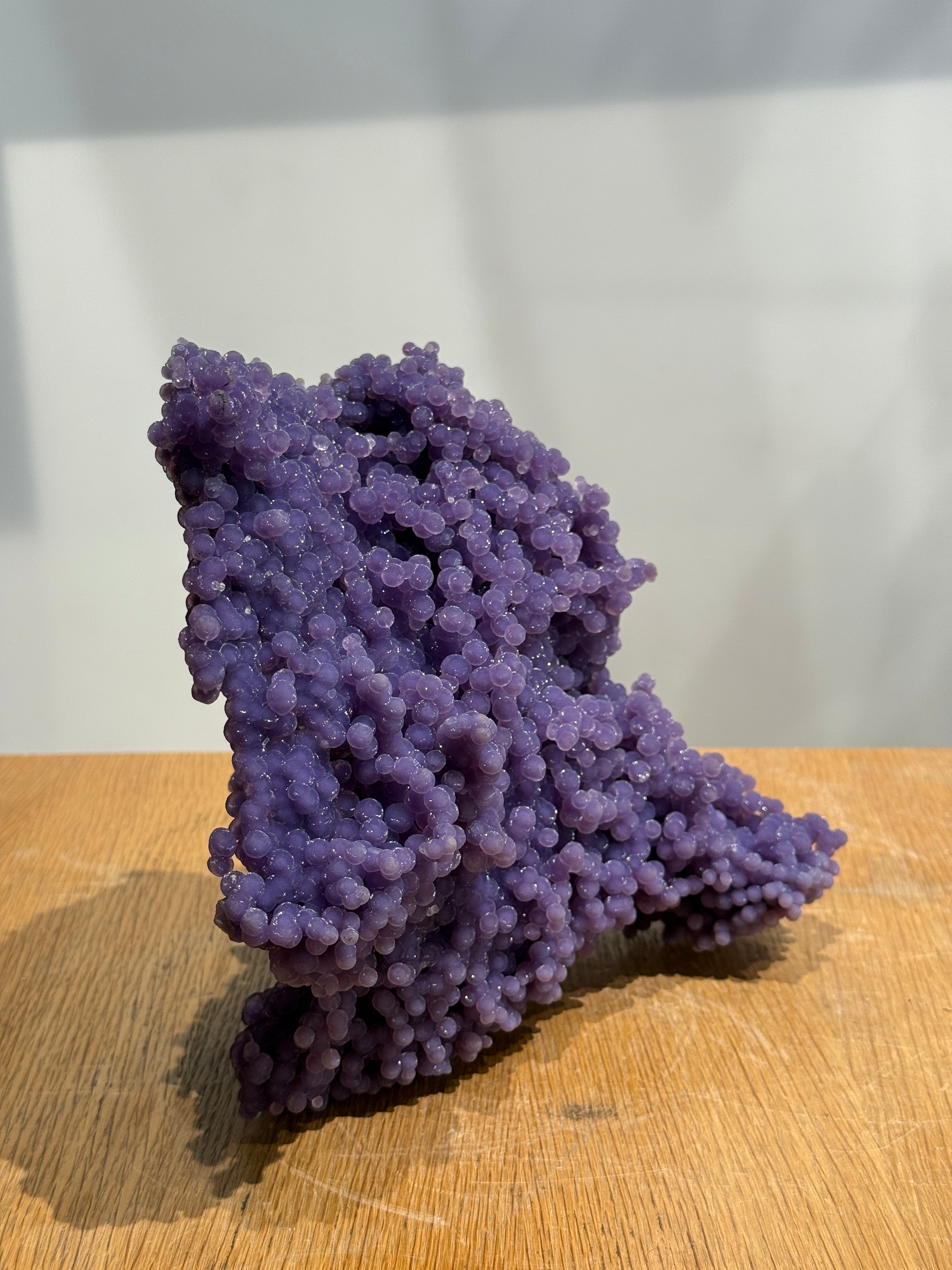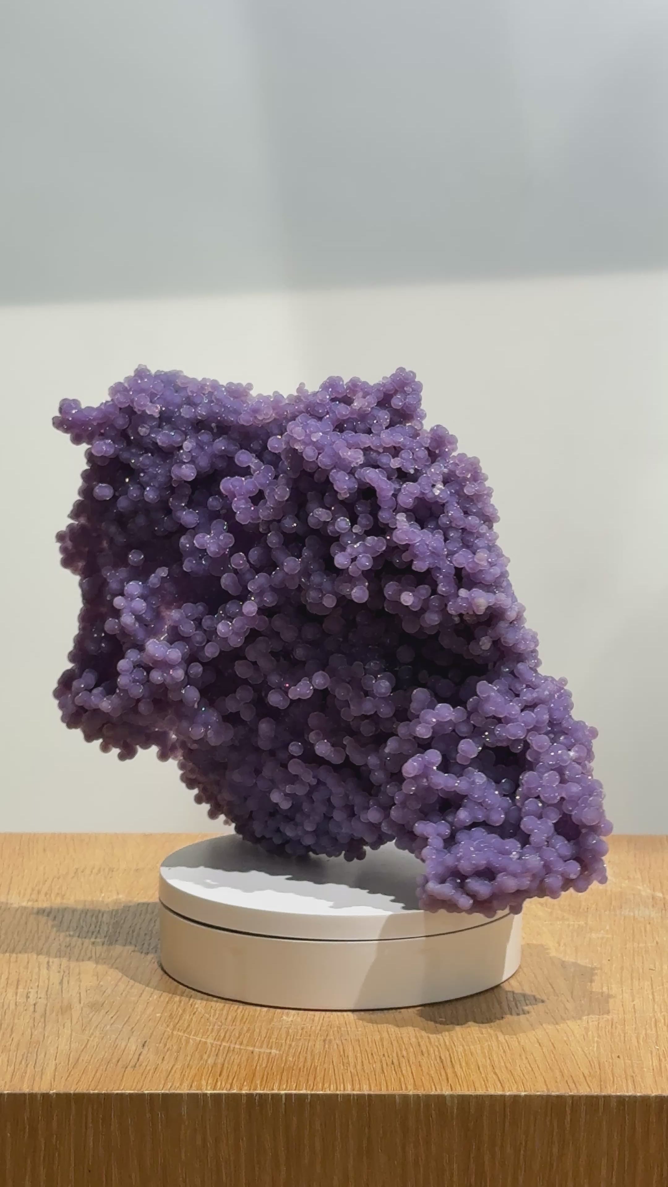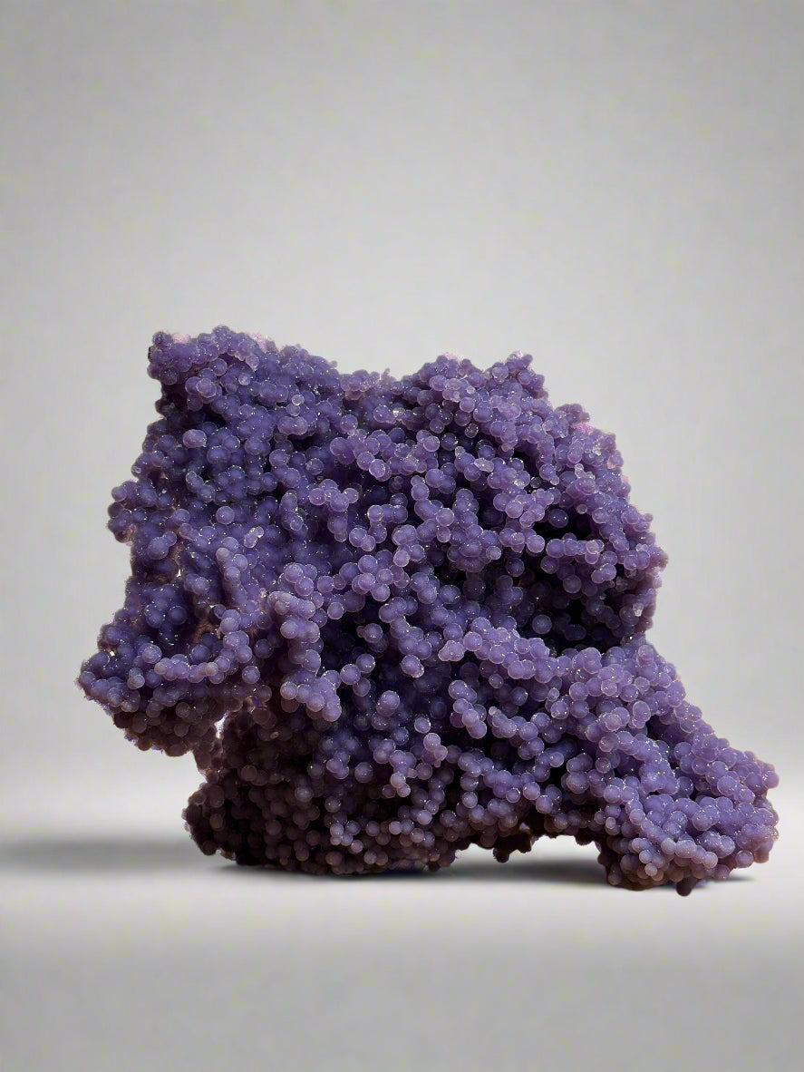 Grape Agate from Indonesia is a unique mineral specimen known for its distinctive botryoidal formations resembling clusters of grapes. This purple to lavender chalcedony offers both aesthetic appeal and geological interest, making it a valuable addition for collectors and researchers alike. Its fine texture and vibrant color highlight the natural beauty of silica-based minerals formed in volcanic environments. Ideal for study or display, this specimen exemplifies the intricate mineral growth processes found in Indonesia’s rich geological landscape.