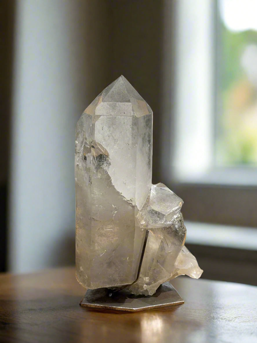 This Quartz on a Custom Base from Arkansas offers a unique blend of natural beauty and tailored craftsmanship. This carefully selected quartz showcases exceptional clarity and durability, mounted on a base designed to enhance its structural integrity and aesthetic appeal. Ideal for architectural and design projects, it provides a sophisticated, long-lasting material solution that highlights the natural elegance of quartz while ensuring stability and ease of installation. Perfect for professionals seeking quality and customization in their mineral selections.