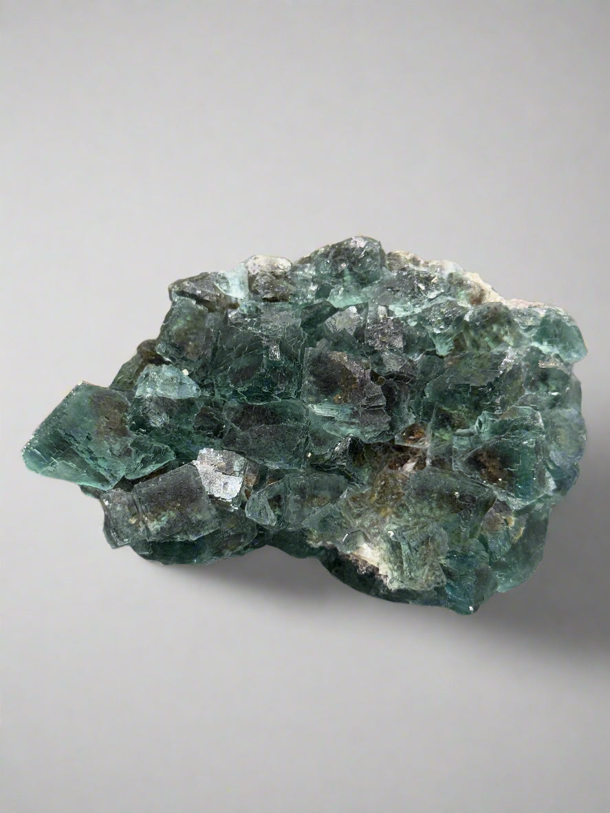 This rare fluorite specimen is sourced from the famous Okorusu Mine in Namibia. With its distinctive blue-green to purple coloration and unique crystalline structure, this fluorite is a must-have for any collector. Enhance your mineral collection today with this exceptional piece from the renowned Okorusu Mine.