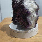 This exquisite Thunder Bay amethyst showcases deep purple hues unique to its origin, framed by a striking hematite ring at its center. The natural contrast emphasizes the stone’s rich color and enhances its overall visual appeal. Ideal for collectors and connoisseurs, this specimen offers both geological significance and aesthetic sophistication.